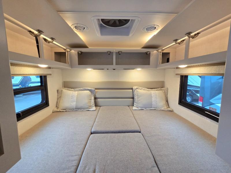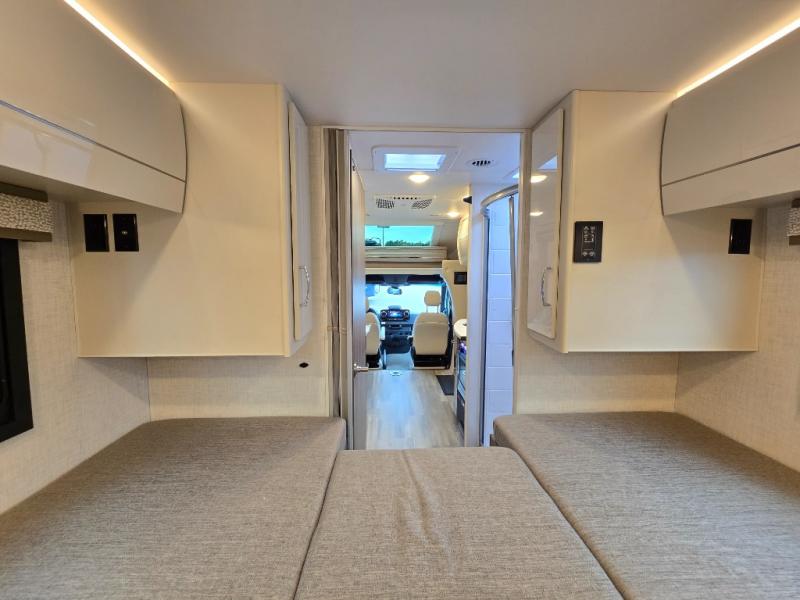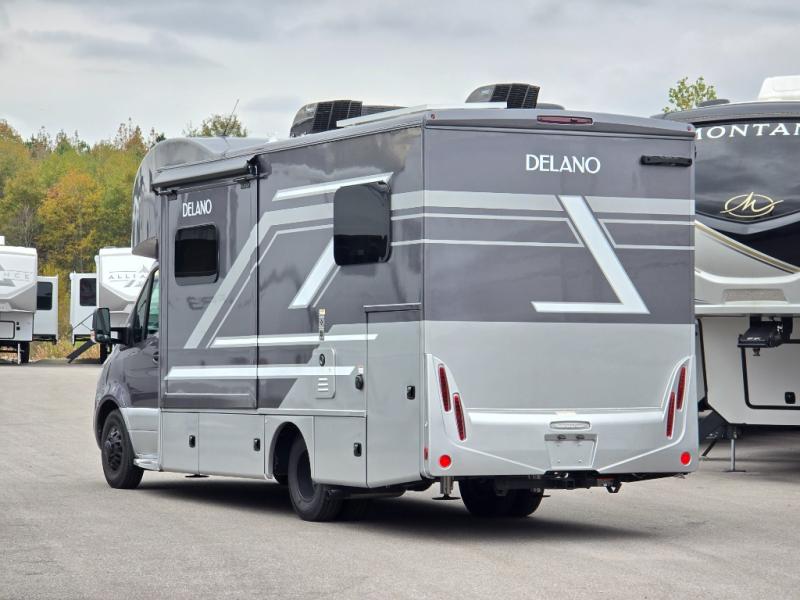Luxury comes standard in the Delano Sprinter Class C diesel motorhomes by Thor Motor Coach. You will find it so easy to maneuver the road with the Mercedes-Benz Safety package that includes features such as active braking assist and distance regulator distronic plus that will help keep a safe distance from vehicles in front of you, and you can add the optional blind spot detection system for even more convenience. The frameless windows and the full-body paint package with gel coated sidewalls is sure to be eye-catching, plus there is invisible front paint protection for added defense against the elements. Each model includes the Rapid Camp+ multiplex wiring control system that will make set-up easier than ever, a Winegard ConnecT 2.0 WiFi/4G/TV antenna to keep you connected to the outside world, and premium one-piece Crossflex roofing material that is ultra durable. The Delano Sprinter also includes many interior comforts, like the easy-to-clean residential vinyl flooring, the Euro-style cabinetry, and the Leatherette furniture!