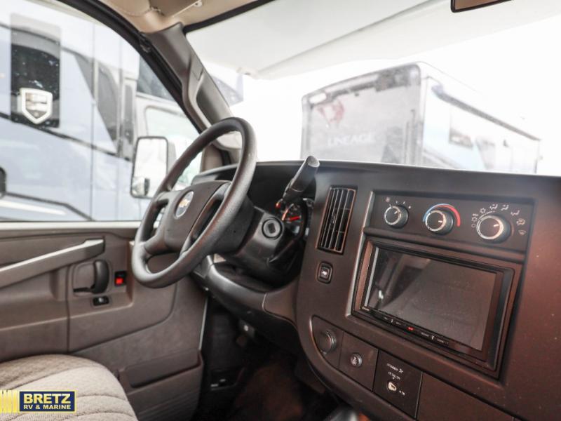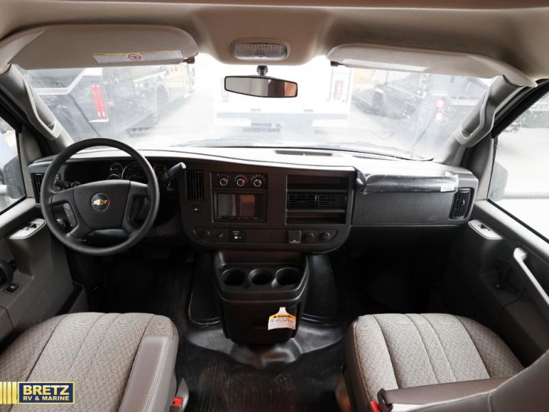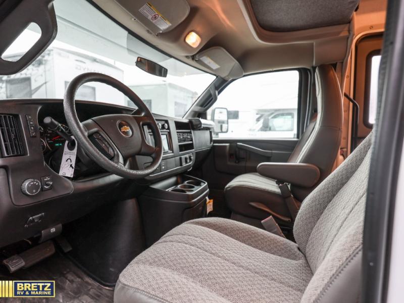 This compact coach will be perfect for your trips across the state or country! Once you park for the day, you can make dinner on the two-burner gas cooktop or in the convection microwave. There is a 12V refrigerator plus an additional quick access pull-out refrigerator to keep drinks stocked! The two twin-size benches/beds can convert to a king-size bed, and there are removable tables here where you can easily dine and play card games at. The rear wet bath includes a power bath vent, a foot flush toilet, and a skylight, plus there is a closet nearby for easy access to clean clothes!