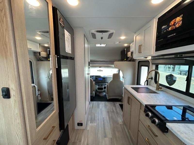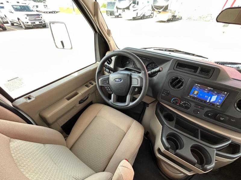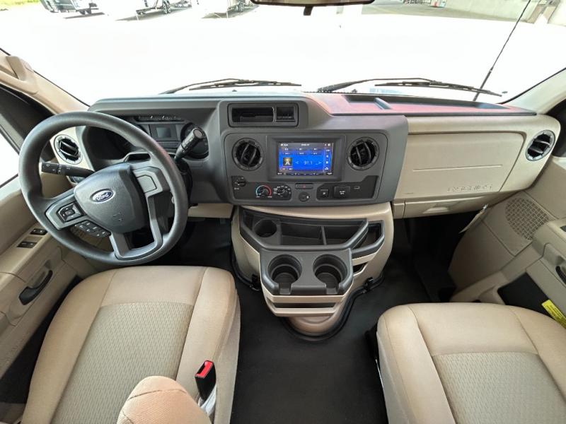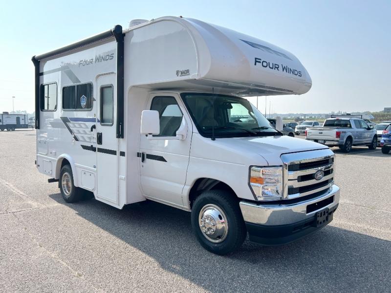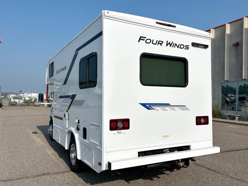 With any Four Winds ESpec Class C gas motorhome by Thor Motor Coach, you will find convenient amenities, a modern interior, and a reliable Ford E-Series chassis, with an optional Chevy chassis on select models to power your adventures. There is welded tubular aluminum roof and sidewall cage construction, a one-piece fiberglass front cap, and a one-piece domed roof membrane for added strength. Residential vinyl flooring will be easy to keep clean, and you'll love the sleek look of the Hampton Collection, two-toned cabinets. These motorhomes also include a 50 state 4.0 kW dual gas/LP generator and a 30-amp shoreline power cord to keep you going, along with a tankless water heater and 13,500 roof front A/C to ensure your comfort!