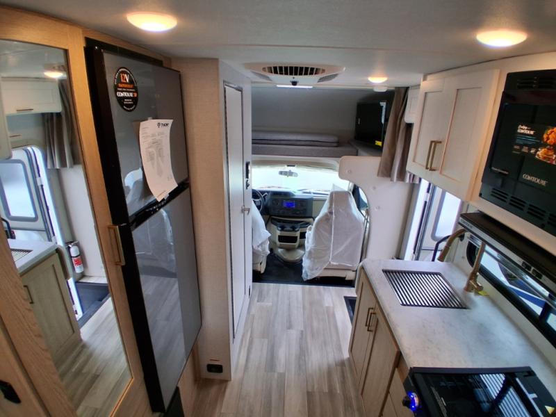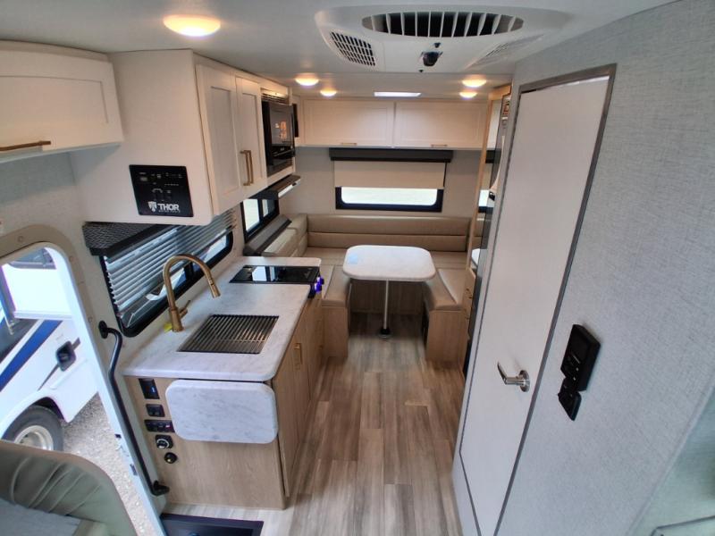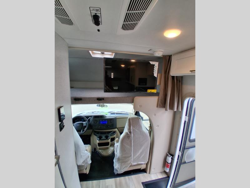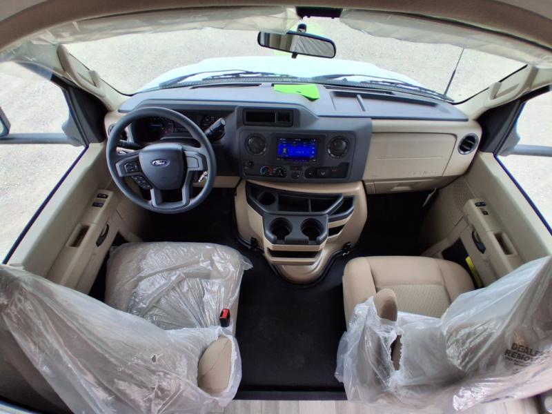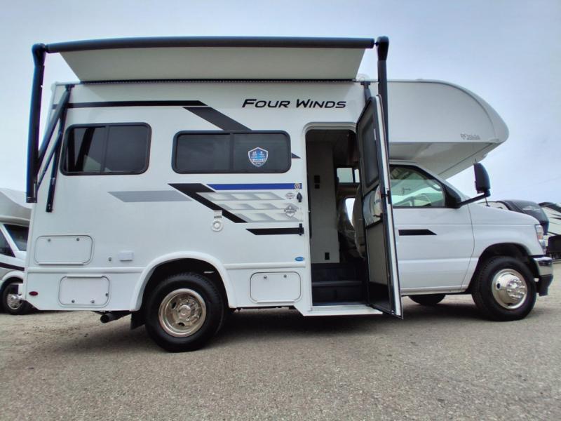 With any Four Winds ESpec Class C gas motorhome by Thor Motor Coach, you will find convenient amenities, a modern interior, and a reliable Ford E-Series chassis, with an optional Chevy chassis on select models to power your adventures. There is welded tubular aluminum roof and sidewall cage construction, a one-piece fiberglass front cap, and a one-piece domed roof membrane for added strength. Residential vinyl flooring will be easy to keep clean, and you'll love the sleek look of the Hampton Collection, two-toned cabinets. These motorhomes also include a 50 state 4.0 kW dual gas/LP generator and a 30-amp shoreline power cord to keep you going, along with a tankless water heater and 13,500 roof front A/C to ensure your comfort!