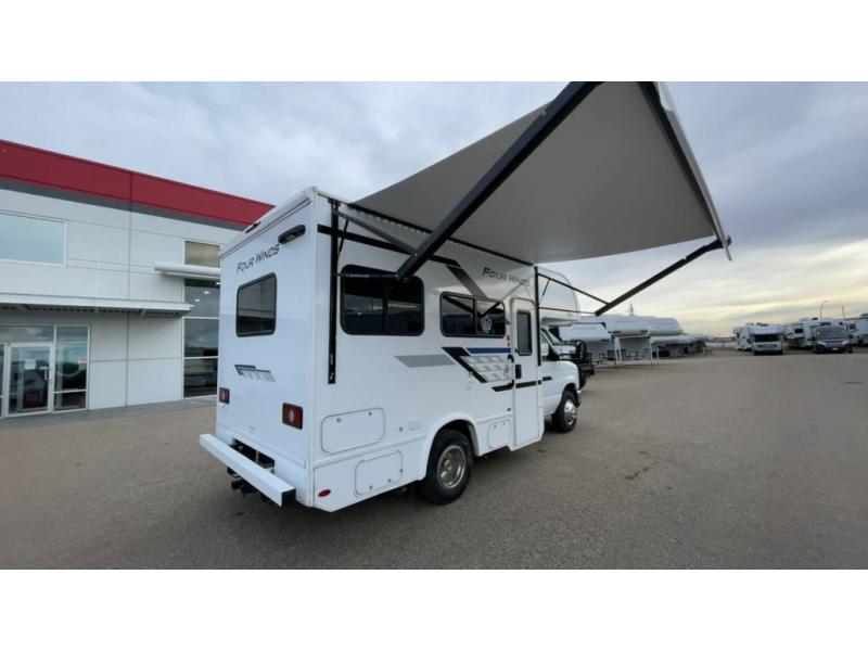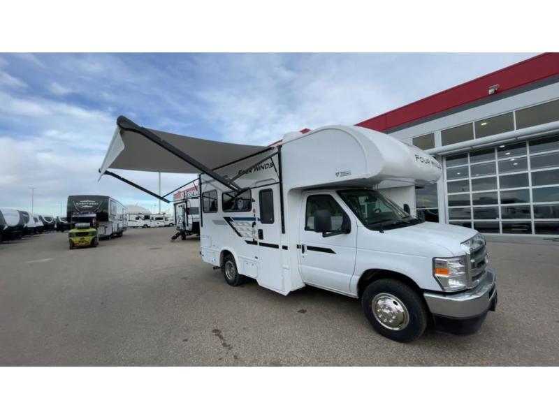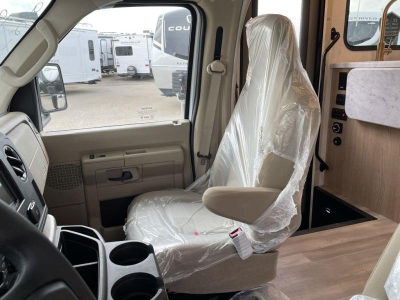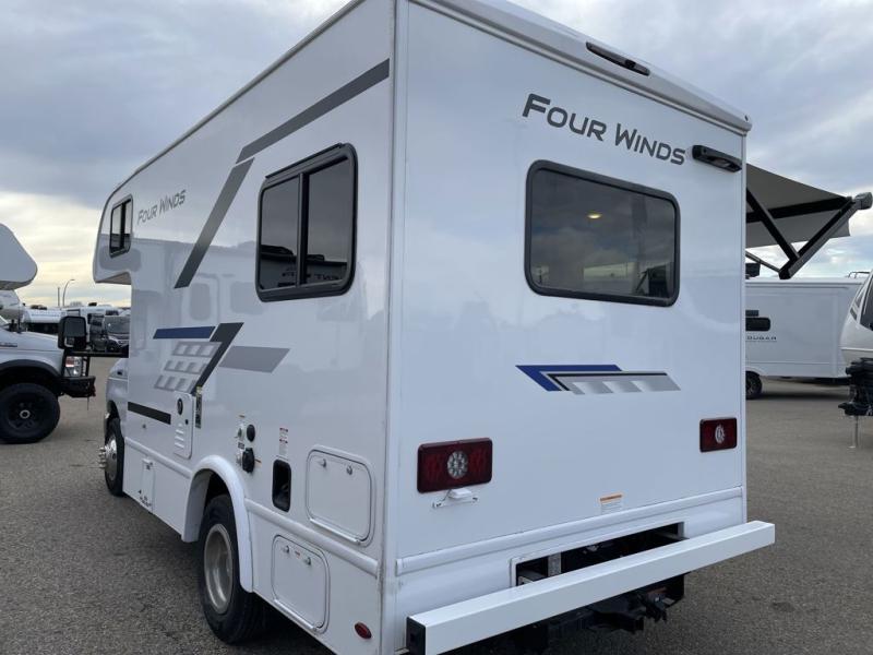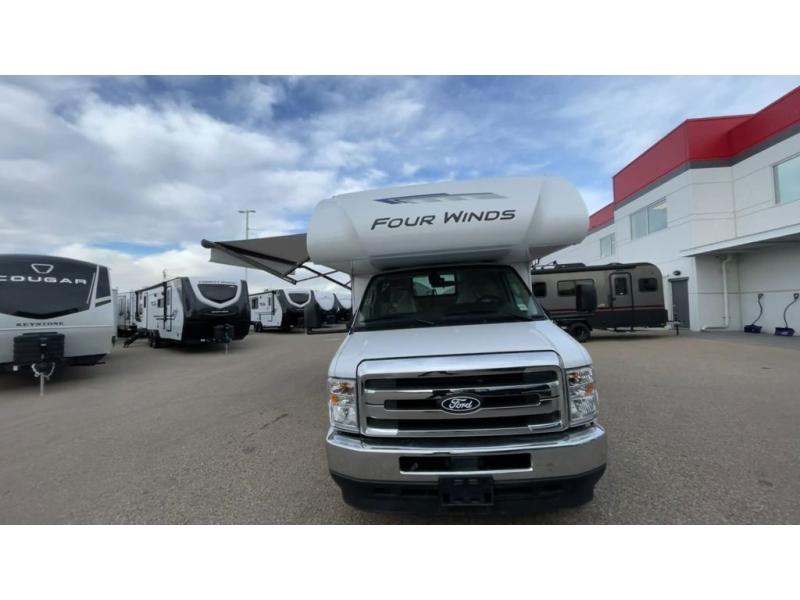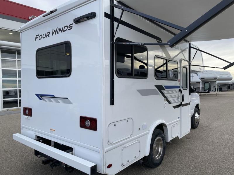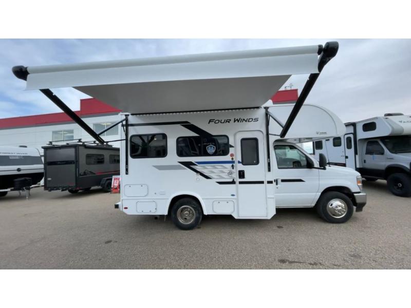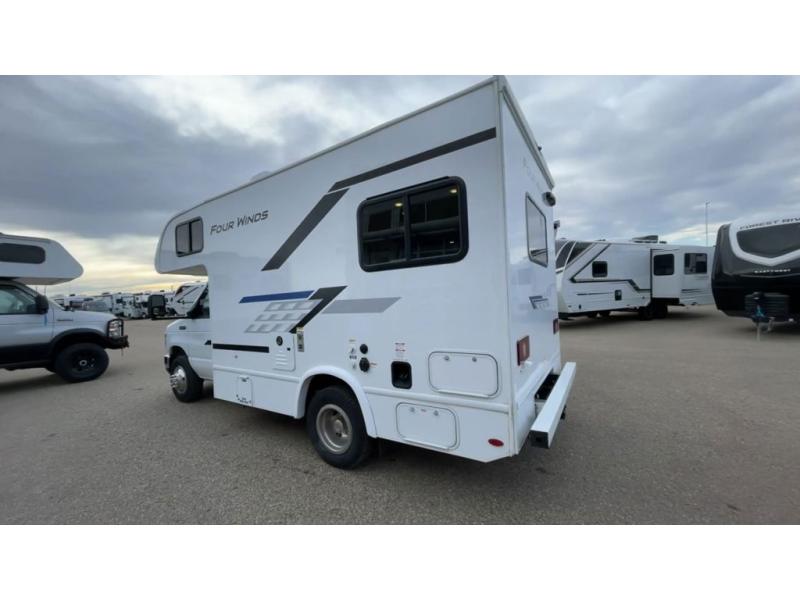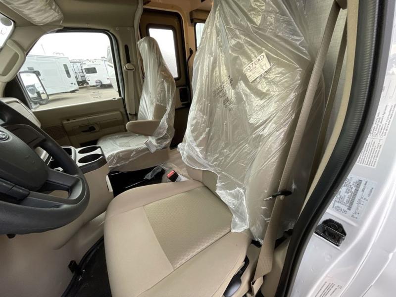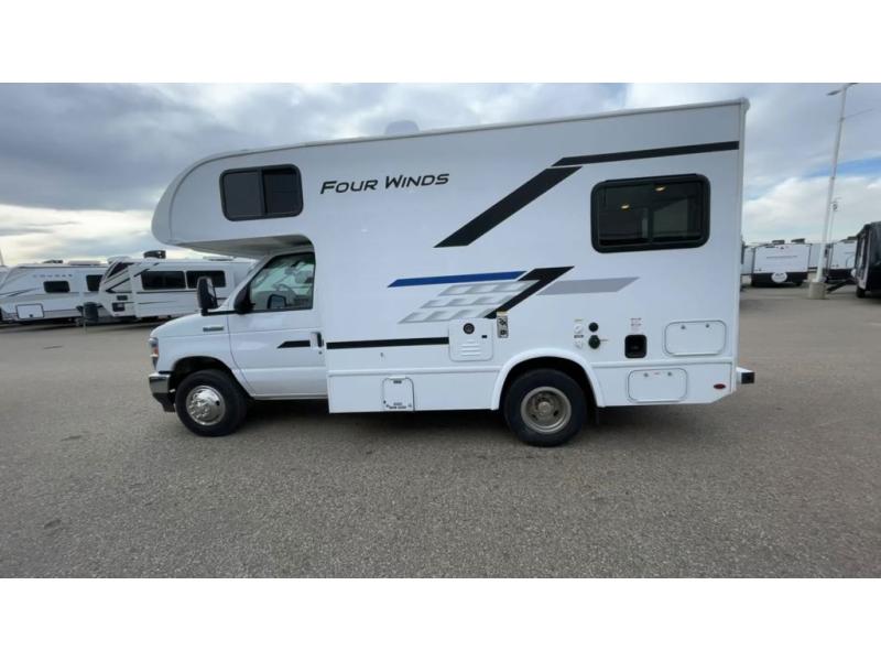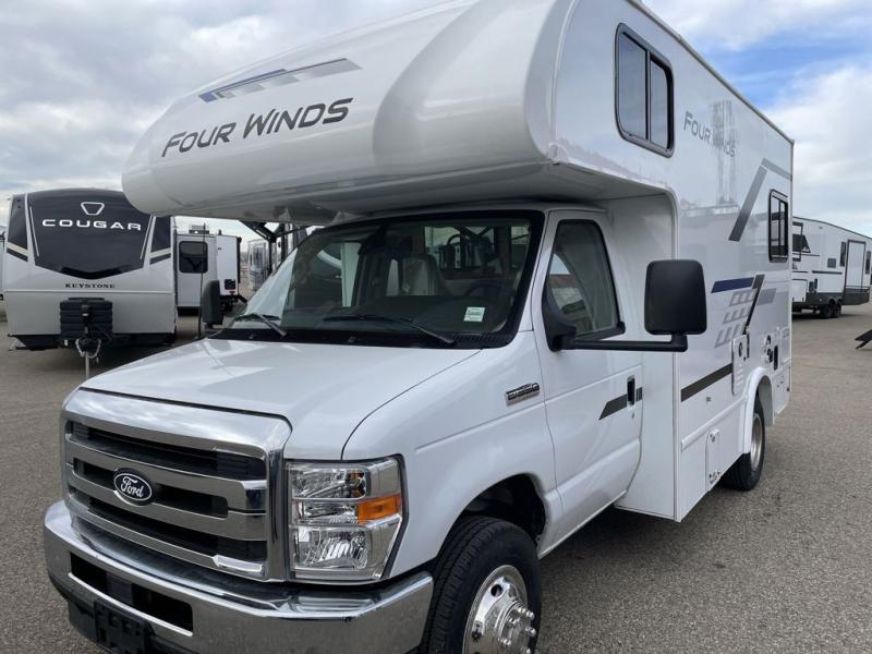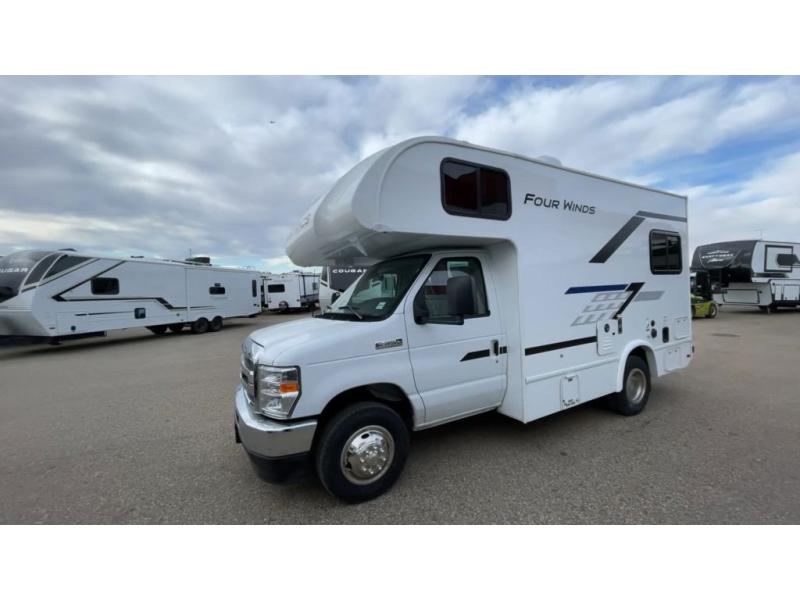 With any Four Winds ESpec Class C gas motorhome by Thor Motor Coach, you will find convenient amenities, a modern interior, and a reliable Ford E-Series chassis, with an optional Chevy chassis on select models to power your adventures. There is welded tubular aluminum roof and sidewall cage construction, a one-piece fiberglass front cap, and a one-piece domed roof membrane for added strength. Residential vinyl flooring will be easy to keep clean, and you'll love the sleek look of the Hampton Collection, two-toned cabinets. These motorhomes also include a 50 state 4.0 kW dual gas/LP generator and a 30-amp shoreline power cord to keep you going, along with a tankless water heater and 13,500 roof front A/C to ensure your comfort!