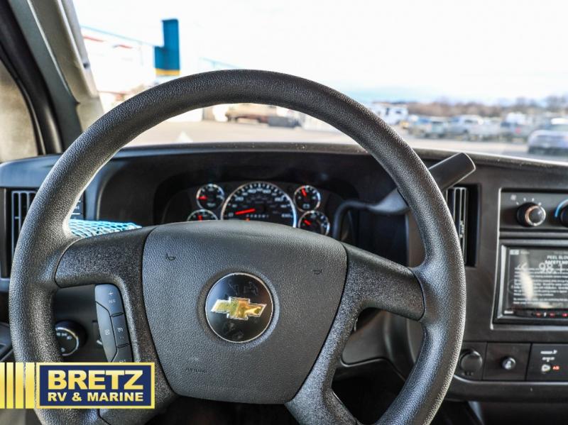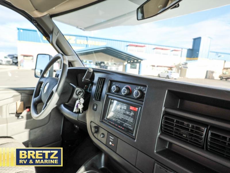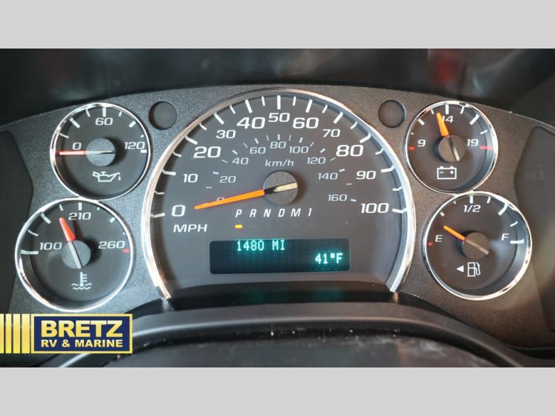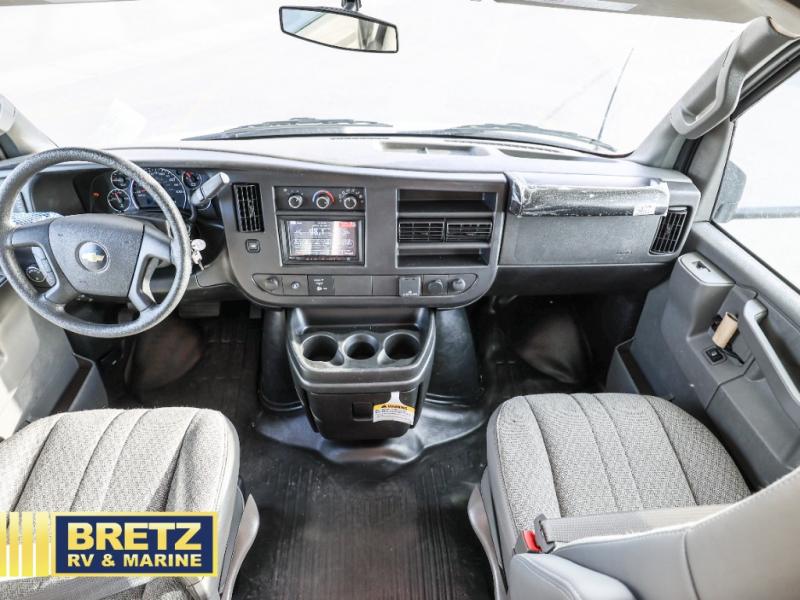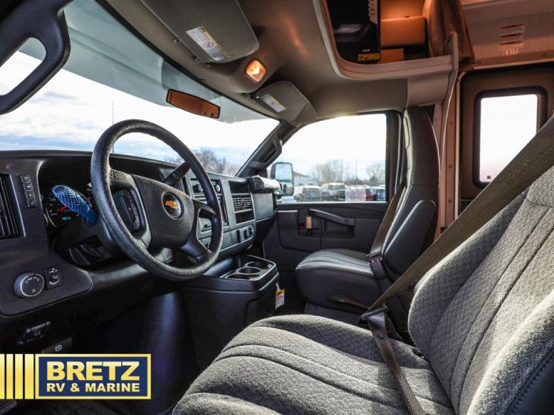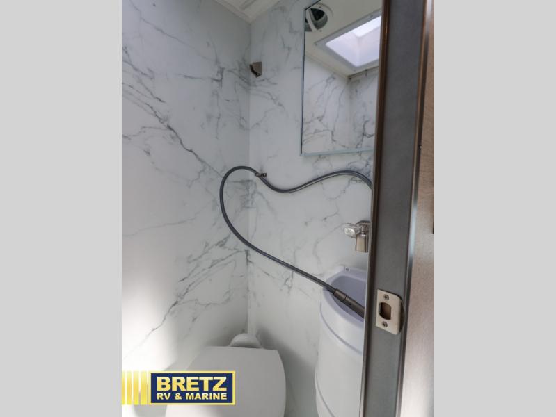 This compact, yet cozy coach is perfect for trips to the campground each weekend! Once you've reached your destination, you can set up the 11' power awning, unload the exterior storage compartments, and relax in your camp chairs. The two burner gas cooktop and convection microwave with an air fryer will let you make meals each day, and there is a 12V refrigerator to keep food fresh. A flip-up counter is another great feature that will give you more prep space! You can freshen up in the wet bath, grab your night clothes from the closet, then convert the U-shaped dinette into a 54" x 77" bed for a great night's rest!