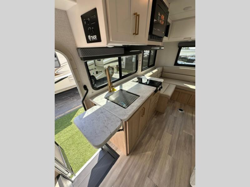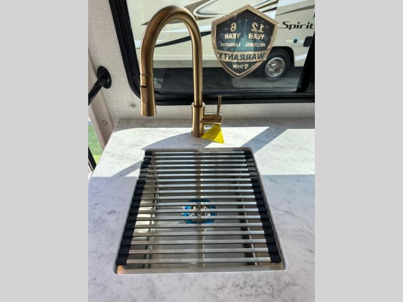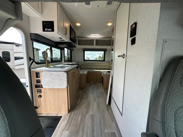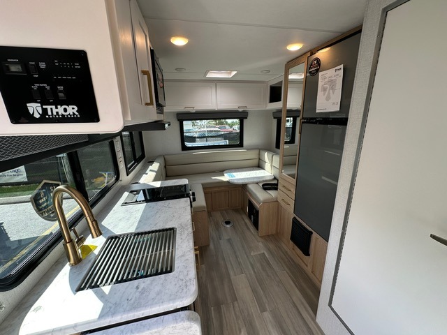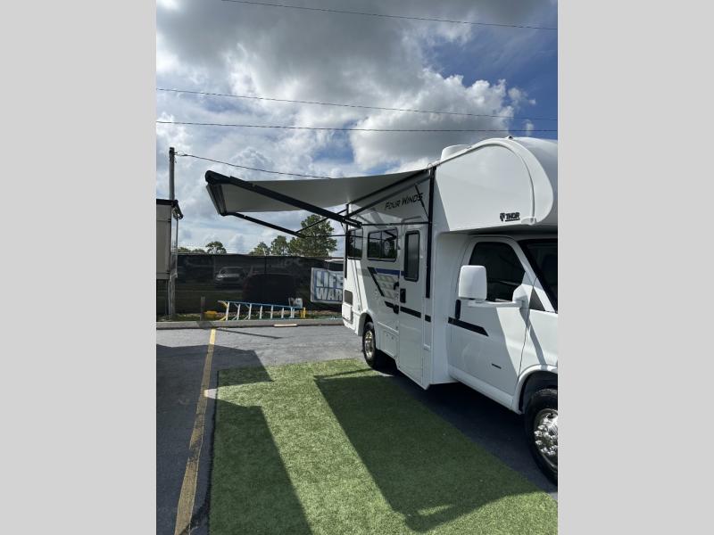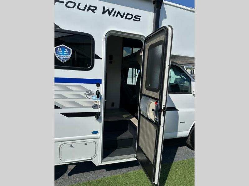 With any Four Winds ESpec Class C gas motorhome by Thor Motor Coach, you will find convenient amenities, a modern interior, and a reliable chassis. There is welded tubular aluminum roof and sidewall cage construction, a one-piece fiberglass front cap, and a one-piece domed roof membrane for added strength. Residential vinyl flooring will be easy to keep clean, and you'll love the sleek look of the Hampton Collection, two-toned cabinets. These motorhomes also include a 50 state 4.0 kW dual gas/LP generator and a 30-amp shoreline power cord to keep you going, along with a tankless water heater and 13,500 roof front A/C to ensure your comfort!