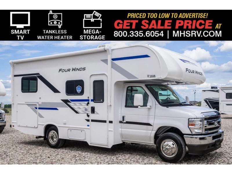 MSRP $129,626. New 2026 Thor Motor Coach Four Winds® 21Z. It measures approximately 24 feet 1 inches in length providing a sleeping, dining and living space while still remaining compact enough for most any state park and exceptional maneuverability even for first time RVers! This features the Ford E-Series Chassis and the Ford 7.3L V8. 325HP engine with 450 lb.-ft Torque. Shop Four Winds – Chateau – Quantum & Geneva Class C RVs at MHSRV.com and save big today! Additional features and construction highlights include an Thor’s MEGA-Storage® exterior compartment, One-piece fiberglass front cap, one-piece upper rear cap, premium one-piece crossflex exterior roofing, power patio awning with integrated LED lighting, Drop down stairwell entrance step with accent light under step, exterior grab handle, 7” Touchscreen dash radio with Bluetooth, Android Auto, Apple CarPlay, keyless entry key fob, back-up monitor, full extension soft close metal ball-bearing drawer guides, cab-over sleeping area with cup holders and bunk ladder, dual child safety tethers in dinette, flip-up countertop extension, 4.0KW gas generator, automatic transfer switch with power protection, tankless water heater and battery tray for four batteries. Shop hundreds of class C gas RVs at 1 location! Choose from Fleetwood Altitude - Gulf Stream BT Cruiser - Thor Chateau - Four Winds - Geneva and Quantum - Entegra Coach Odyssey Odyssey SE and Esteem - East to West Entrada - Forest River Forester - Forester LE - Nexus Phantom - Viper and much more. We also sell quality pre-owned models such as Jayco Greyhawk – Redhawk - Redhawk SE - Thor Magnitude - Winnebago Spirit - and Minnie Winnie - Coachmen Freelander and Leprechaun - Forest River Sunseeker Classic - Sunseeker LE – Solera - Holiday Rambler Incline and much more. Visit MHSRV.com for our complete line-up and the sale prices that have made us the #1 volume selling motor home dealership in the world 12 years in a row! For additional details on this unit and our entire inventory including brochures, window sticker, videos, photos, reviews and testimonials as well as additional information about Motor Home Specialist and our manufacturers please visit us at MHSRV.com or call 800-335-6054. At Motor Home Specialist, we DO NOT charge any prep or orientation fees like you will find at other dealerships. All sale prices include a 200-point inspection, interior & exterior wash, detail service and a fully automated high-pressure rain booth test and coach wash that is a standout service unlike that of any other in the industry. You will also receive a thorough coach orientation with an MHSRV technician, a night stay in our delivery park featuring landscaped and covered pads with full hook-ups and much more! Read thousands-upon-thousands of 5-Star reviews at MHSRV.com and see what they had to say about their experience at Motor Home Specialist. WHY PAY MORE? WHY SETTLE FOR LESS?