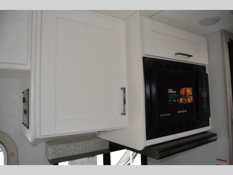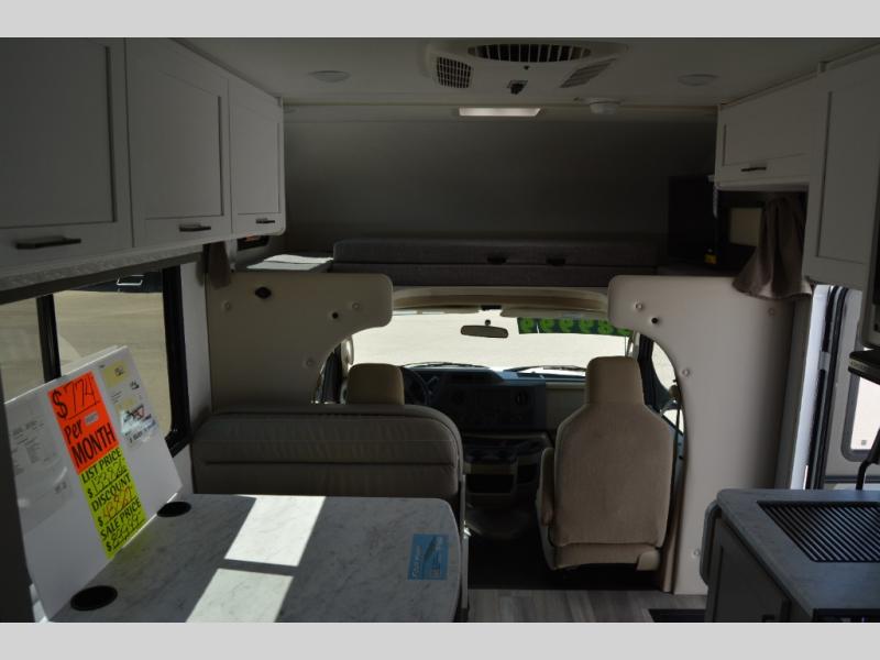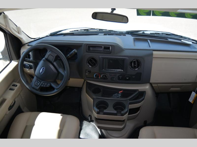 With any Four Winds ESpec Class C gas motorhome by Thor Motor Coach, you will find convenient amenities, a modern interior, and a reliable Ford E-Series chassis, with an optional Chevy chassis on select models to power your adventures. There is welded tubular aluminum roof and sidewall cage construction, a one-piece fiberglass front cap, and a one-piece domed roof membrane for added strength. Residential vinyl flooring will be easy to keep clean, and you'll love the sleek look of the Hampton Collection, two-toned cabinets. These motorhomes also include a 50 state 4.0 kW dual gas/LP generator and a 30-amp shoreline power cord to keep you going, along with a tankless water heater and 13,500 roof front A/C to ensure your comfort!
