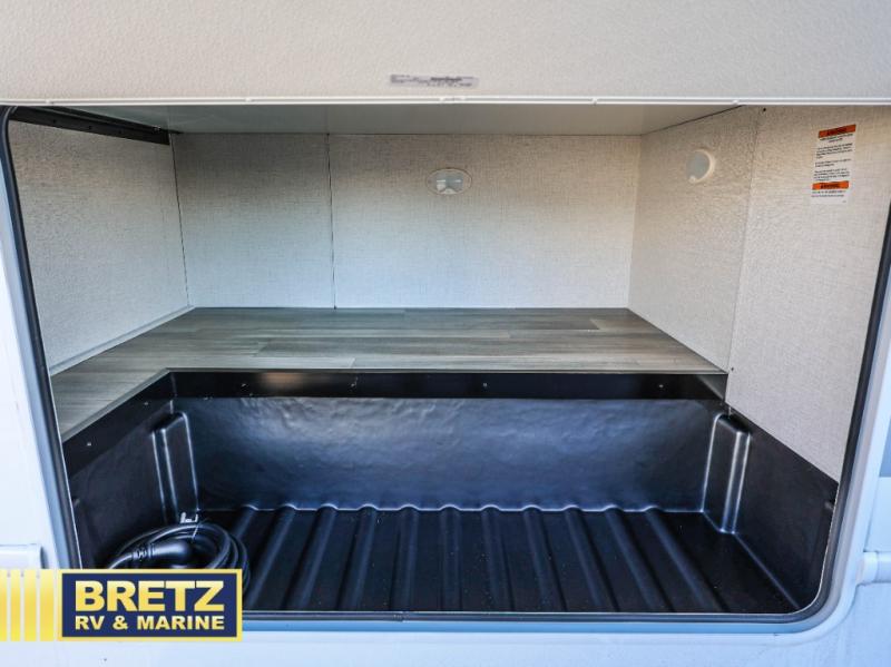 It won't be hard to find comfort in this coach for five! You can freshen up in the rear corner full bath once you've set up camp, then make lunch on the two burner gas cooktop or convection microwave with an air fryer. There is also a 12V refrigerator for cold items and a flip-up countertop for more space. Whether you dine at the Dream Dinette or take your plate outdoors under the 15' power awning, you're sure to have a great time in this motorhome. The rear corner full-size bed will provide a comfy place to rest your head at night, while your guests take the dinette and cab-over bunk!