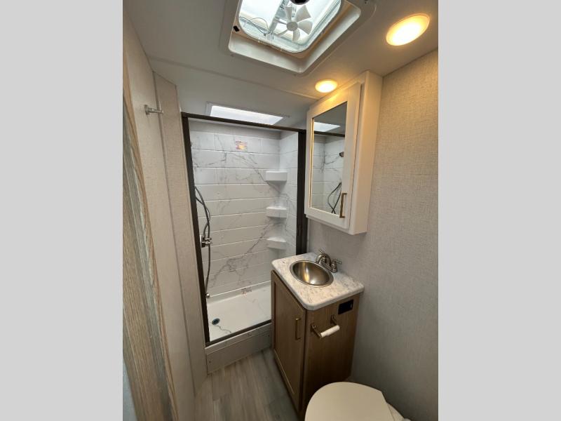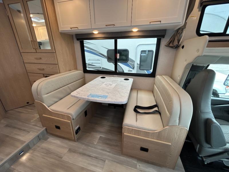 With any Four Winds ESpec Class C gas motorhome by Thor Motor Coach, you will find convenient amenities, a modern interior, and a reliable chassis. There is welded tubular aluminum roof and sidewall cage construction, a one-piece fiberglass front cap, and a one-piece domed roof membrane for added strength. Residential vinyl flooring will be easy to keep clean, and you'll love the sleek look of the Hampton Collection, two-toned cabinets. These motorhomes also include a 50 state 4.0 kW dual gas/LP generator and a 30-amp shoreline power cord to keep you going, along with a tankless water heater and 13,500 roof front A/C to ensure your comfort!