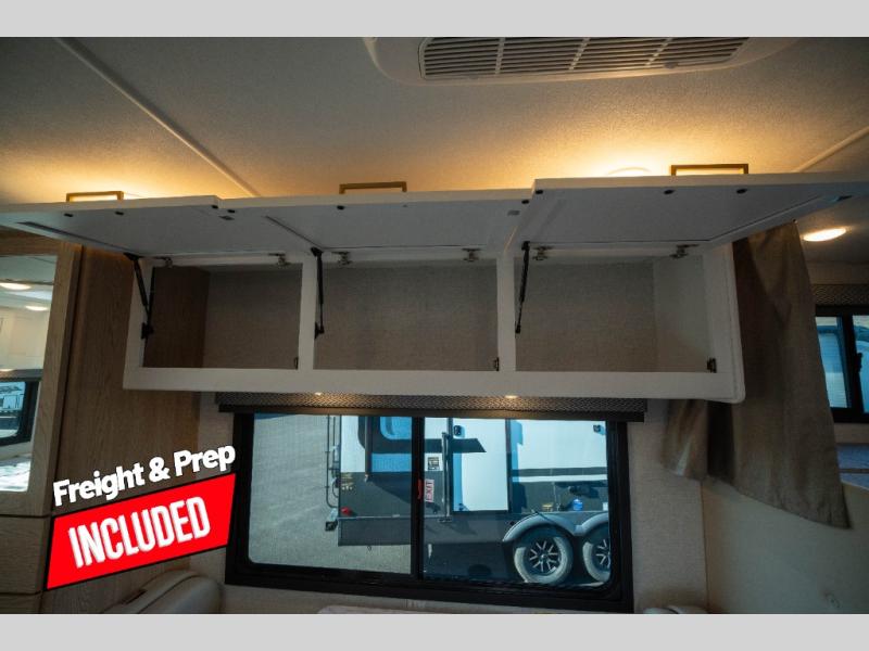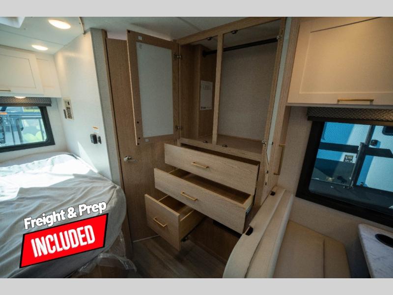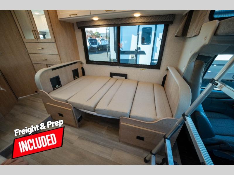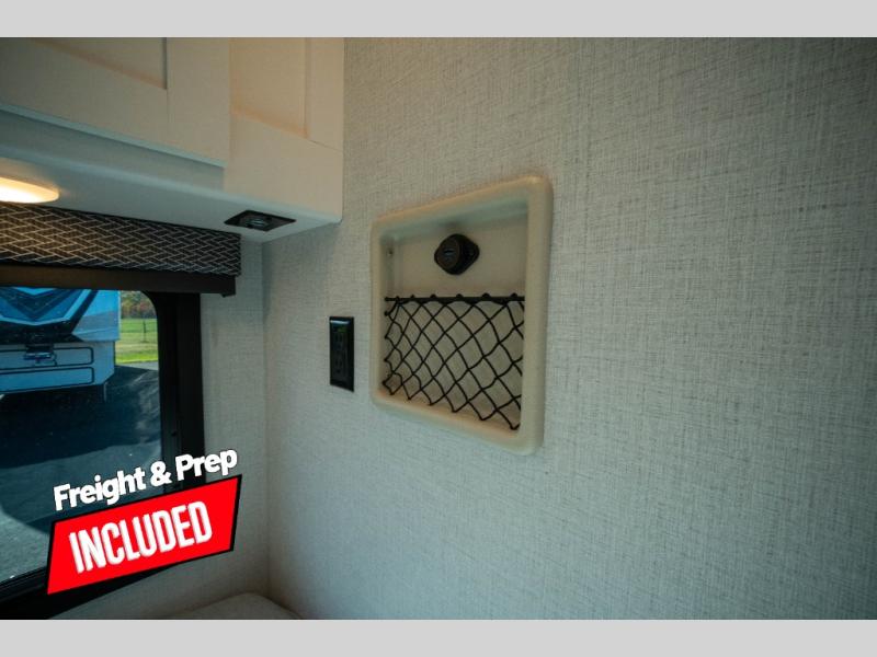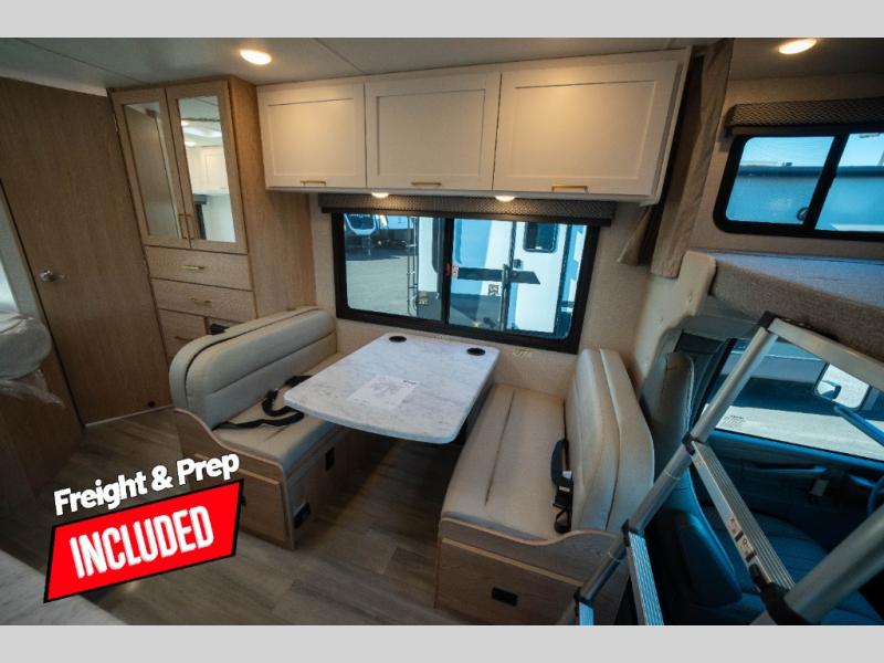 With any Four Winds ESpec Class C gas motorhome by Thor Motor Coach, you will find convenient amenities, a modern interior, and a reliable chassis. There is welded tubular aluminum roof and sidewall cage construction, a one-piece fiberglass front cap, and a one-piece domed roof membrane for added strength. Residential vinyl flooring will be easy to keep clean, and you'll love the sleek look of the Hampton Collection, two-toned cabinets. These motorhomes also include a 50 state 4.0 kW dual gas/LP generator and a 30-amp shoreline power cord to keep you going, along with a tankless water heater and 13,500 roof front A/C to ensure your comfort!