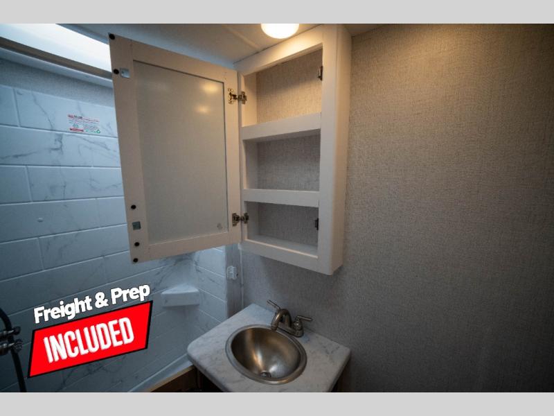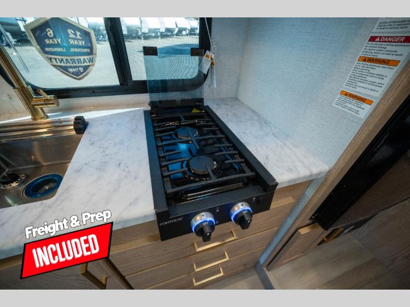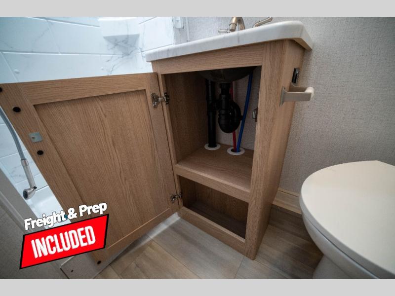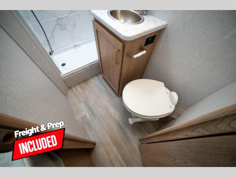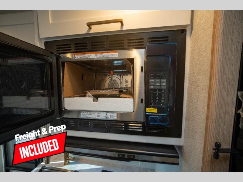 It won't be hard to find comfort in this coach for five! You can freshen up in the rear corner full bath once you've set up camp, then make lunch on the two burner gas cooktop or convection microwave with an air fryer. There is also a 12V refrigerator for cold items and a flip-up countertop for more space. Whether you dine at the Dream Dinette or take your plate outdoors under the 15' power awning, you're sure to have a great time in this motorhome. The rear corner full-size bed will provide a comfy place to rest your head at night, while your guests take the dinette and cab-over bunk!