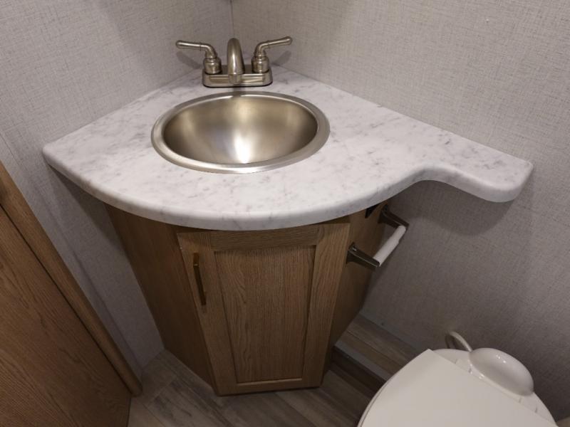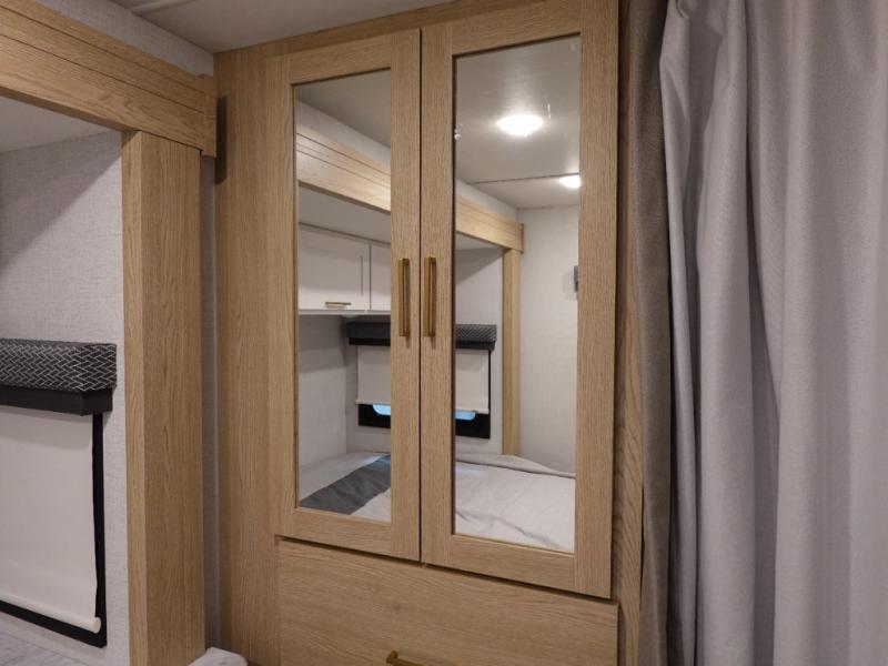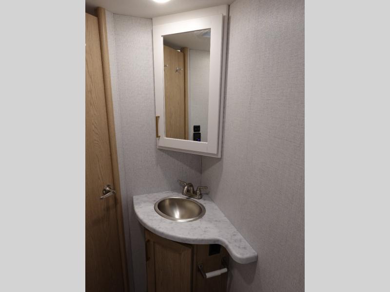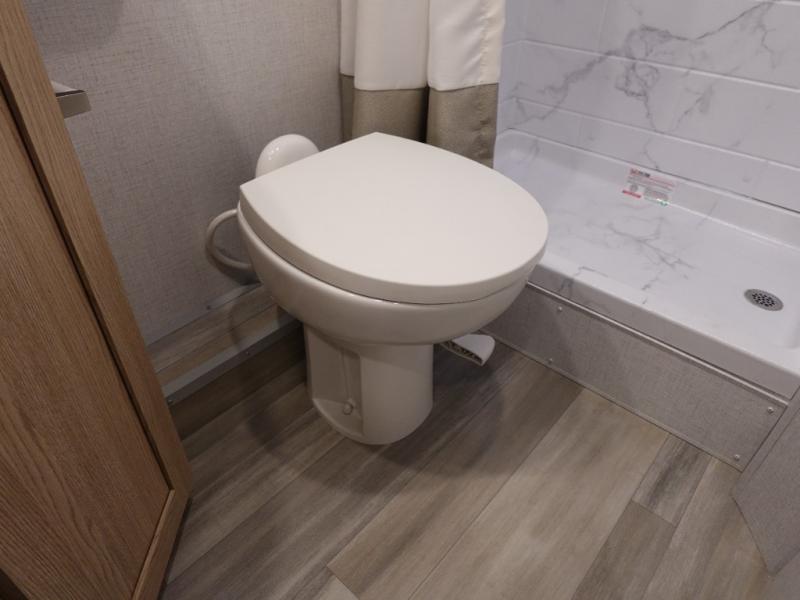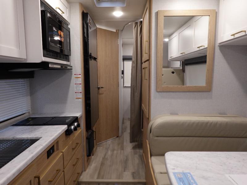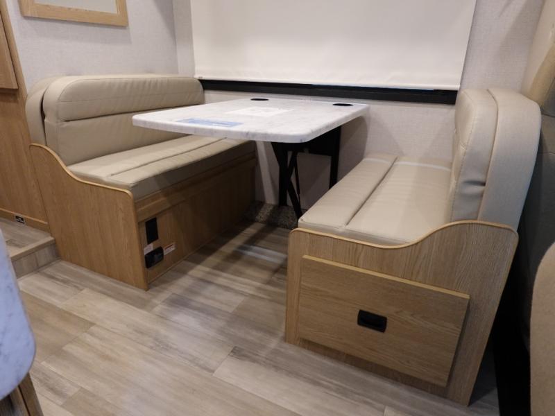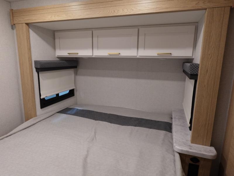 It won't be hard to find comfort in this coach for five! You can freshen up in the rear corner full bath once you've set up camp, then make lunch on the two burner gas cooktop or convection microwave with an air fryer. There is also a 12V refrigerator for cold items and a flip-up countertop for more space. Whether you dine at the Dream Dinette or take your plate outdoors under the 15' power awning, you're sure to have a great time in this motorhome. There is a semi-private bedroom with a 60" x 74" RV queen bed slide and bedroom TV prep if you want the option to watch movies in bed. And your guests can take the Dream Dinette and cab-over bunk at night!