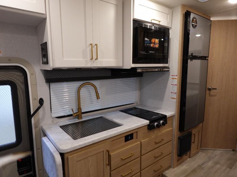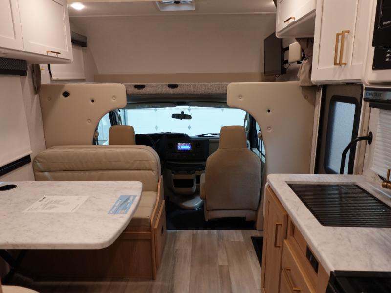 With any Four Winds ESpec Class C gas motorhome by Thor Motor Coach, you will find convenient amenities, a modern interior, and a reliable Ford E-Series chassis to power your adventures. There is welded tubular aluminum roof and sidewall cage construction, a one-piece fiberglass front cap, and a one-piece domed roof membrane for added strength. Residential vinyl flooring will be easy to keep clean, and you'll love the sleek look of the Hampton Collection, two-toned cabinets. These motorhomes also include a 50 state 4.0 kW dual gas/LP generator and a 30-amp shoreline power cord to keep you going, along with a tankless water heater and 13,500 roof front A/C to ensure your comfort!