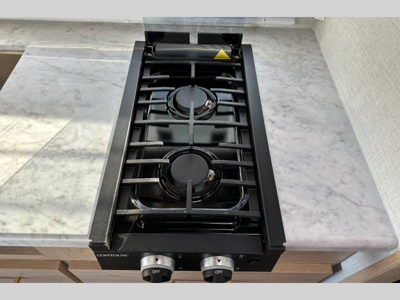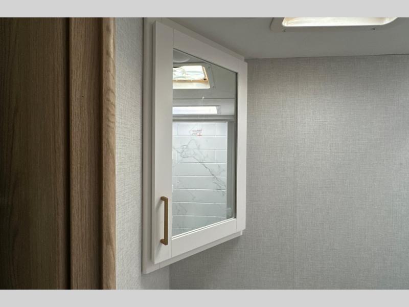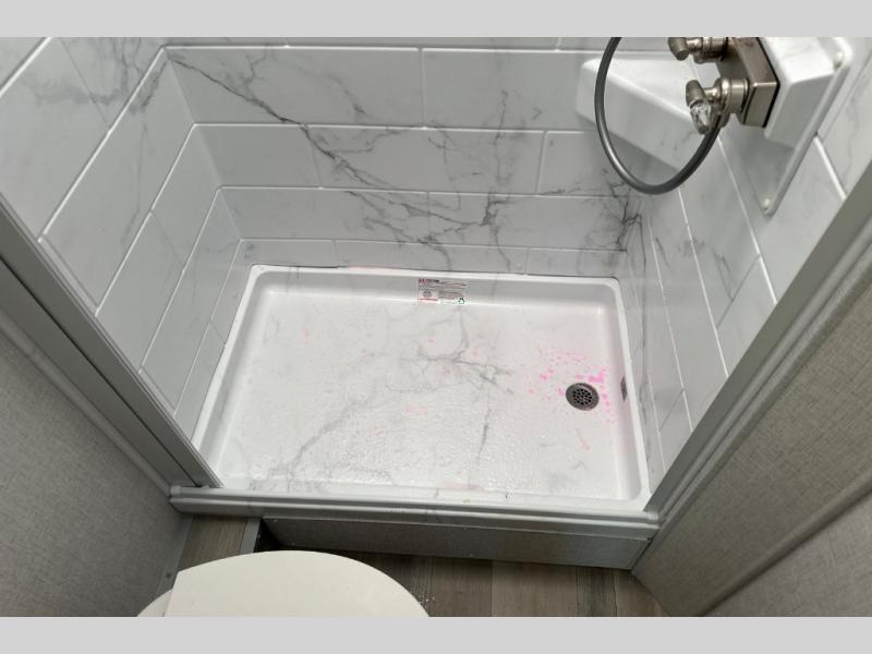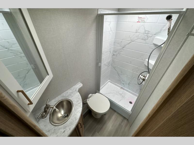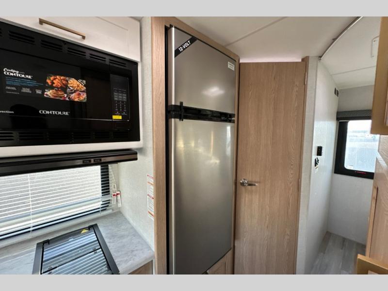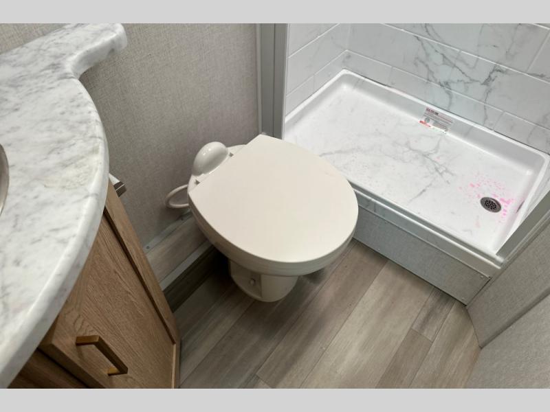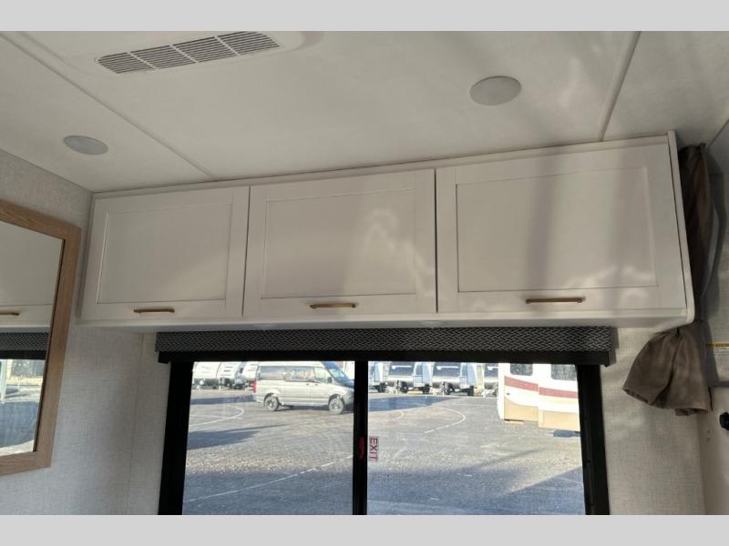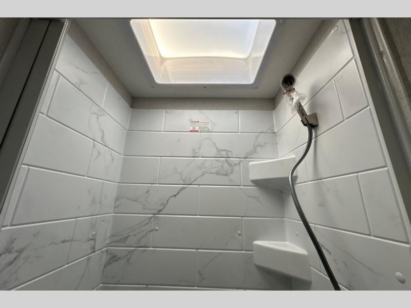 It won't be hard to find comfort in this coach for five! You can freshen up in the rear corner full bath once you've set up camp, then make lunch on the two burner gas cooktop or convection microwave with an air fryer. There is also a 12V refrigerator for cold items and a flip-up countertop for more space. Whether you dine at the Dream Dinette or take your plate outdoors under the 15' power awning, you're sure to have a great time in this motorhome. There is a semi-private bedroom with a 60" x 74" RV queen bed slide and bedroom TV prep if you want the option to watch movies in bed. And your guests can take the Dream Dinette and cab-over bunk at night!