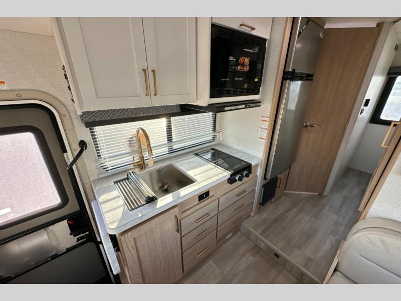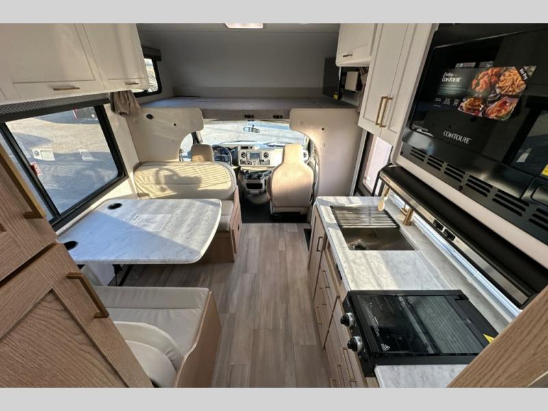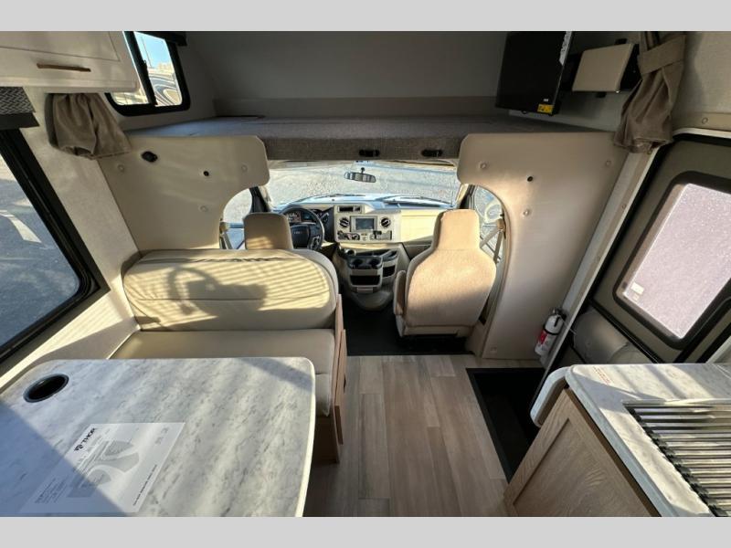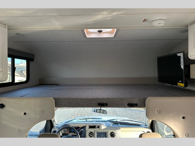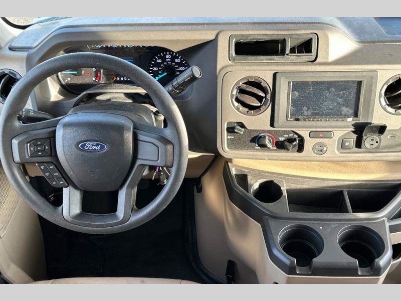 With any Four Winds ESpec Class C gas motorhome by Thor Motor Coach, you will find convenient amenities, a modern interior, and a reliable Ford E-Series chassis, with an optional Chevy chassis on select models to power your adventures. There is welded tubular aluminum roof and sidewall cage construction, a one-piece fiberglass front cap, and a one-piece domed roof membrane for added strength. Residential vinyl flooring will be easy to keep clean, and you'll love the sleek look of the Hampton Collection, two-toned cabinets. These motorhomes also include a 50 state 4.0 kW dual gas/LP generator and a 30-amp shoreline power cord to keep you going, along with a tankless water heater and 13,500 roof front A/C to ensure your comfort!