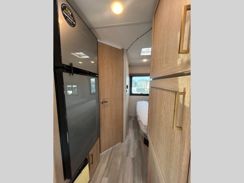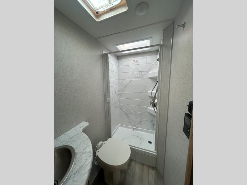 It won't be hard to find comfort in this coach for five! You can freshen up in the rear corner full bath once you've set up camp, then make lunch on the two burner gas cooktop or convection microwave with an air fryer. There is also a 12V refrigerator for cold items and a flip-up countertop for more space. Whether you dine at the Dream Dinette or take your plate outdoors under the 15' power awning, you're sure to have a great time in this motorhome. There is a semi-private bedroom with a 60" x 74" RV queen bed slide and bedroom TV prep if you want the option to watch movies in bed. And your guests can take the Dream Dinette and cab-over bunk at night!