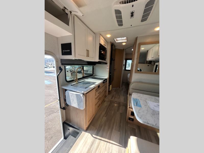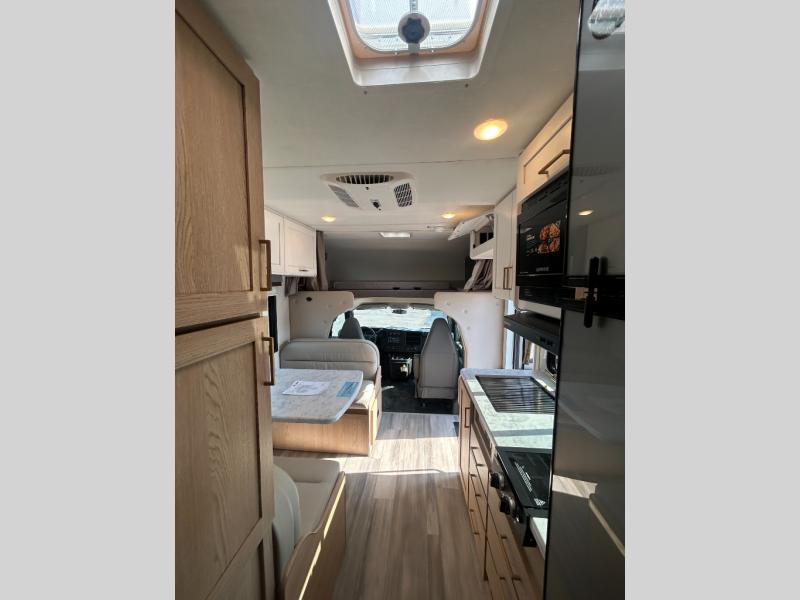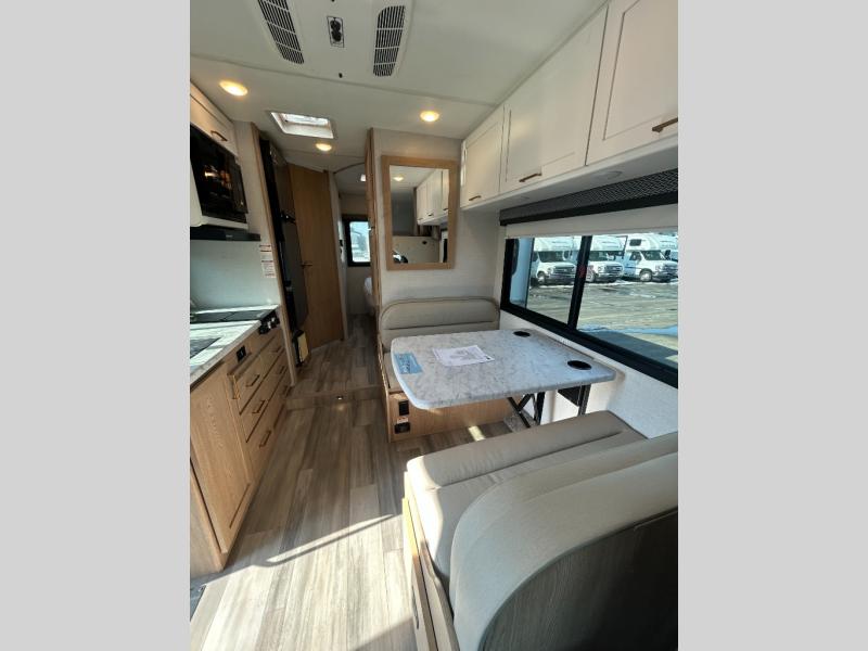 With any Four Winds ESpec Class C gas motorhome by Thor Motor Coach, you will find convenient amenities, a modern interior, and a reliable chassis. There is welded tubular aluminum roof and sidewall cage construction, a one-piece fiberglass front cap, and a one-piece domed roof membrane for added strength. Residential vinyl flooring will be easy to keep clean, and you'll love the sleek look of the Hampton Collection, two-toned cabinets. These motorhomes also include a 50 state 4.0 kW dual gas/LP generator and a 30-amp shoreline power cord to keep you going, along with a tankless water heater and 13,500 roof front A/C to ensure your comfort!