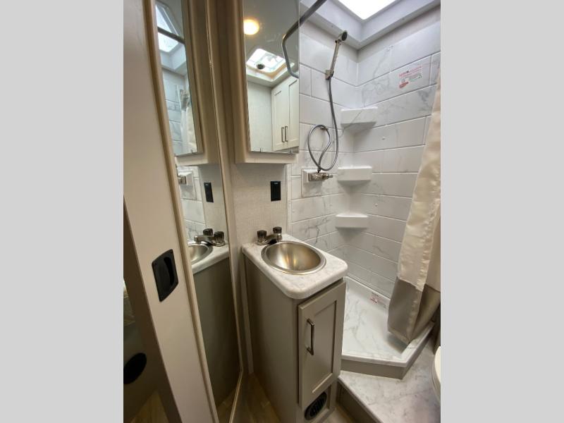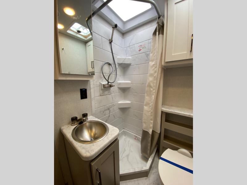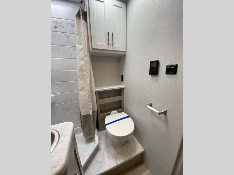 It won't be hard to find comfort in this coach for five! You can freshen up in the mid-coach full bath once you've set up camp, then make lunch on the two burner gas cooktop or convection microwave with an air fryer. There is also a 12V refrigerator for cold items and a flip-up countertop for more space. Whether you dine at the Dream Dinette slide out or take your plate outdoors under the 17' 6" power awning, you're sure to have a great time in this motorhome. The semi-private rear bedroom includes a privacy curtain, two twin beds with a king-size bed conversion, plus TV prep if you want the option to watch shows in bed. And any guests you may have can sleep on the dinette and 52" x 96" cab-over sleeping space!