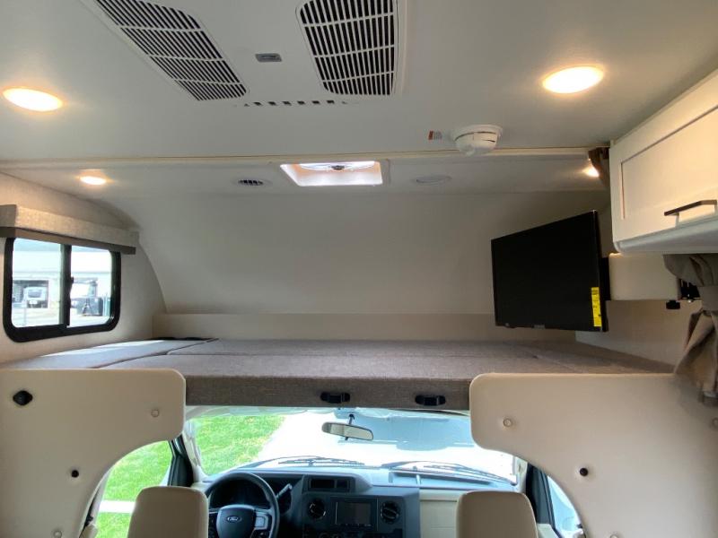 With any Four Winds ESpec Class C gas motorhome by Thor Motor Coach, you will find convenient amenities, a modern interior, and a reliable Ford E-Series chassis, with an optional Chevy chassis on select models to power your adventures. There is welded tubular aluminum roof and sidewall cage construction, a one-piece fiberglass front cap, and a one-piece domed roof membrane for added strength. Residential vinyl flooring will be easy to keep clean, and you'll love the sleek look of the Hampton Collection, two-toned cabinets. These motorhomes also include a 50 state 4.0 kW dual gas/LP generator and a 30-amp shoreline power cord to keep you going, along with a tankless water heater and 13,500 roof front A/C to ensure your comfort!