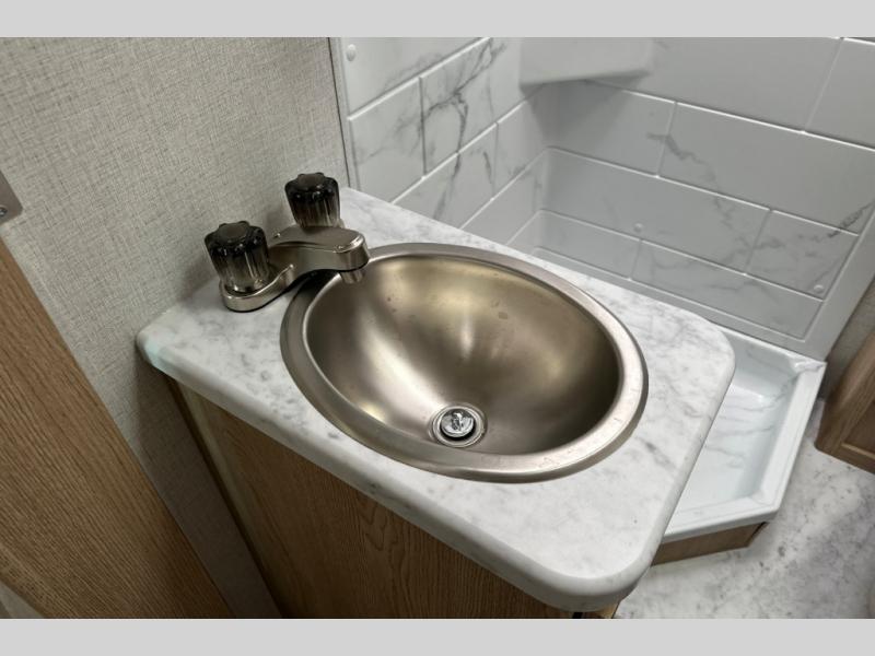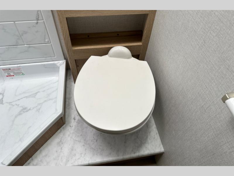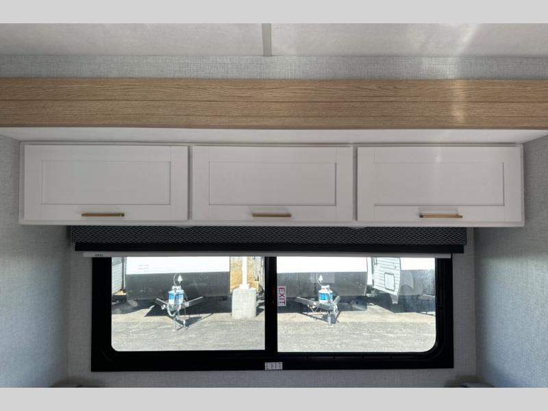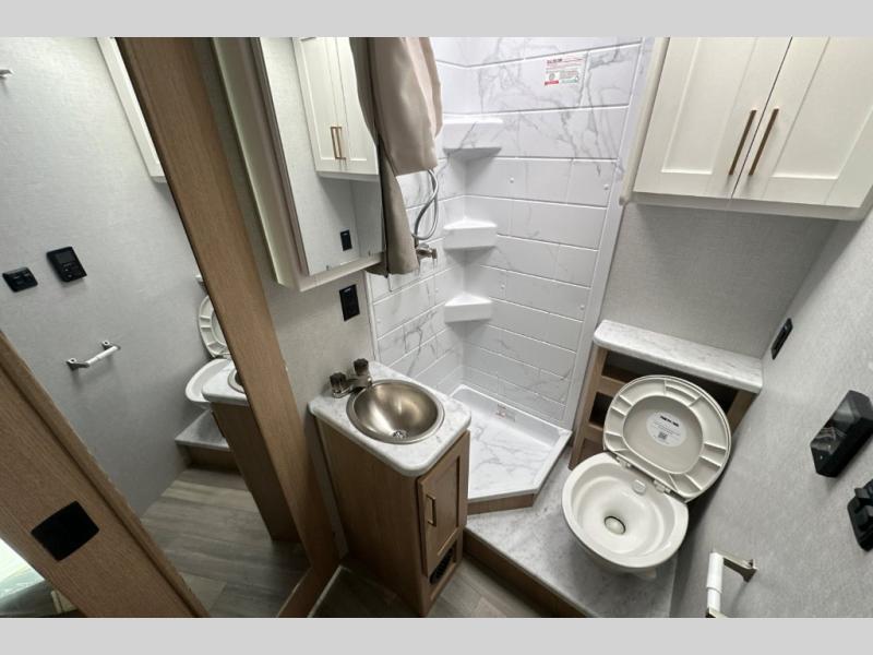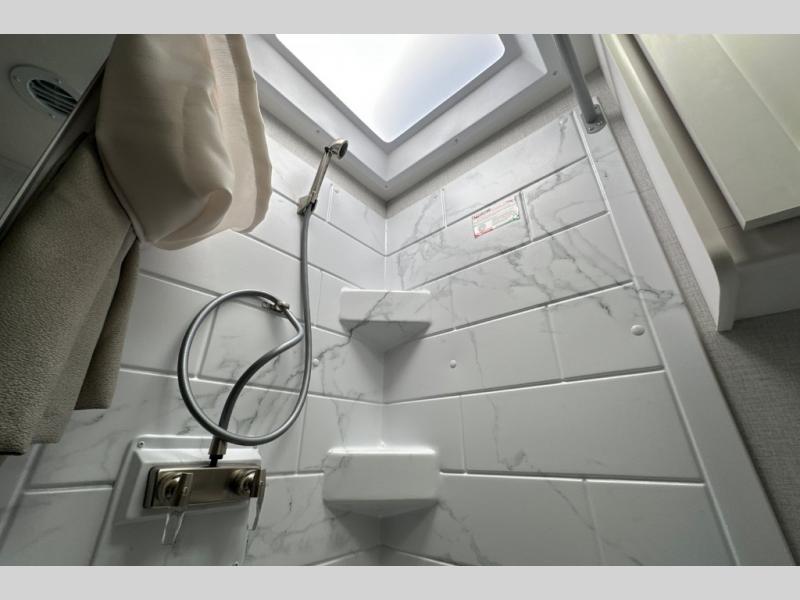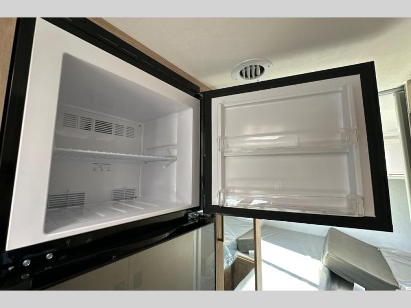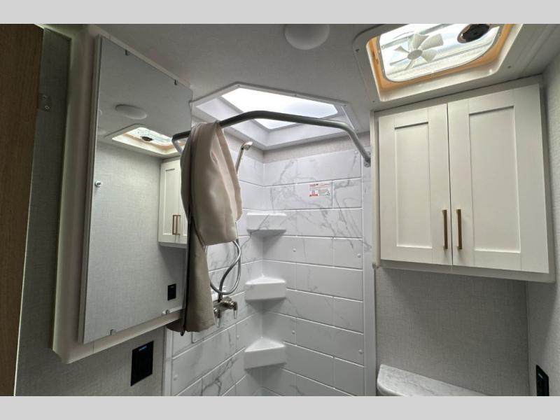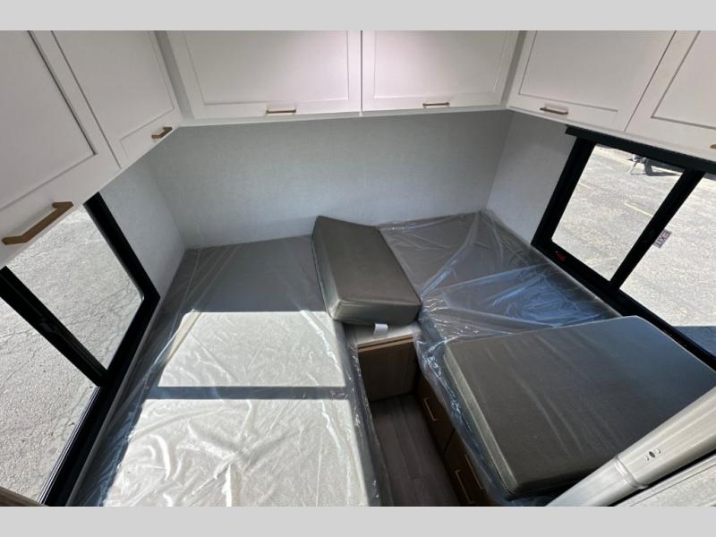 It won't be hard to find comfort in this coach for five! You can freshen up in the mid-coach full bath once you've set up camp, then make lunch on the two burner gas cooktop or convection microwave with an air fryer. There is also a 12V refrigerator for cold items and a flip-up countertop for more space. Whether you dine at the Dream Dinette slide out or take your plate outdoors under the 17' 6" power awning, you're sure to have a great time in this motorhome. The semi-private rear bedroom includes a privacy curtain, two twin beds with a king-size bed conversion, plus TV prep if you want the option to watch shows in bed. And any guests you may have can sleep on the dinette and 52" x 96" cab-over sleeping space!