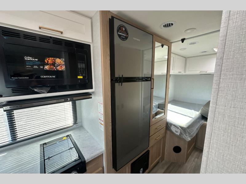 With any Four Winds ESpec Class C gas motorhome by Thor Motor Coach, you will find convenient amenities, a modern interior, and a reliable Ford E-Series chassis, with an optional Chevy chassis on select models to power your adventures. There is welded tubular aluminum roof and sidewall cage construction, a one-piece fiberglass front cap, and a one-piece domed roof membrane for added strength. Residential vinyl flooring will be easy to keep clean, and you'll love the sleek look of the Hampton Collection, two-toned cabinets. These motorhomes also include a 50 state 4.0 kW dual gas/LP generator and a 30-amp shoreline power cord to keep you going, along with a tankless water heater and 13,500 roof front A/C to ensure your comfort!