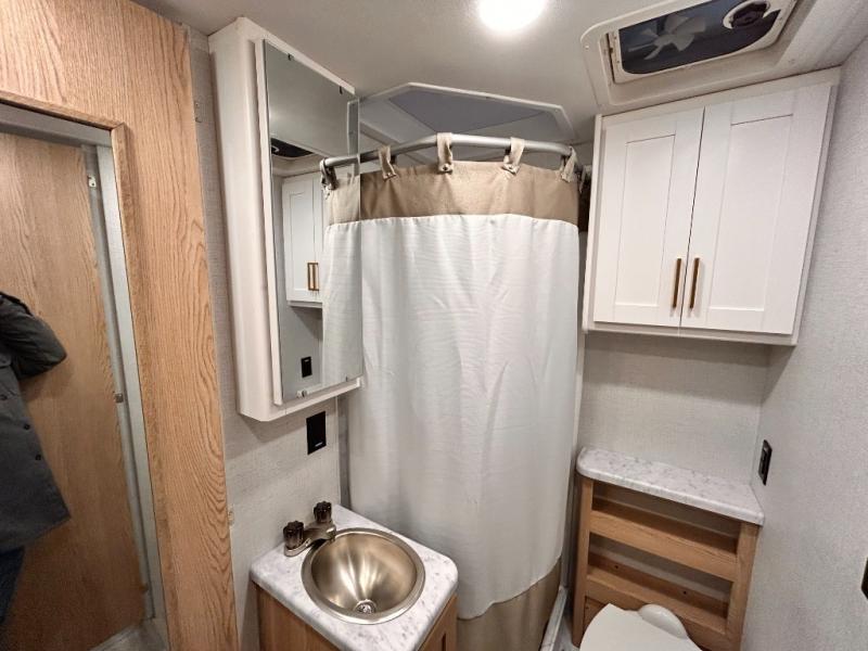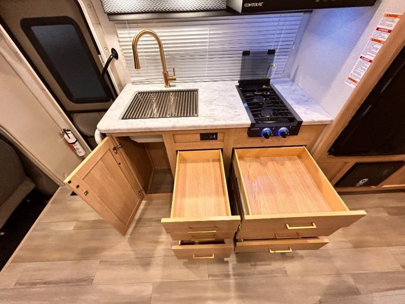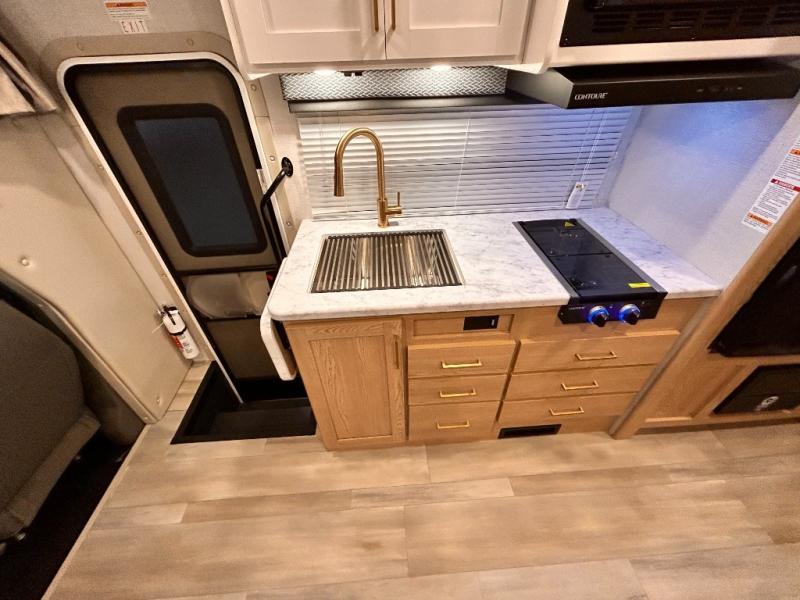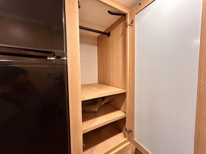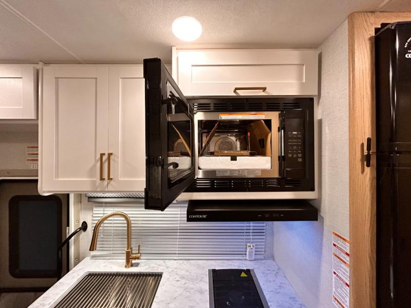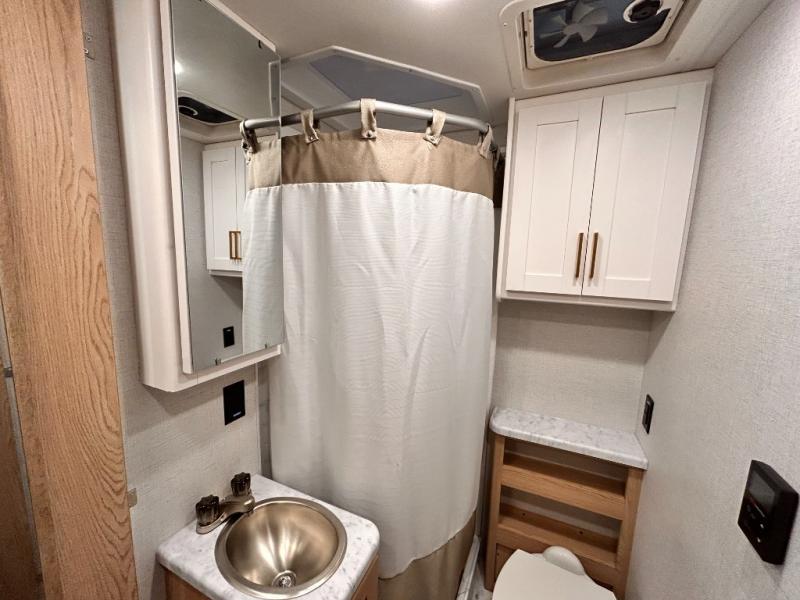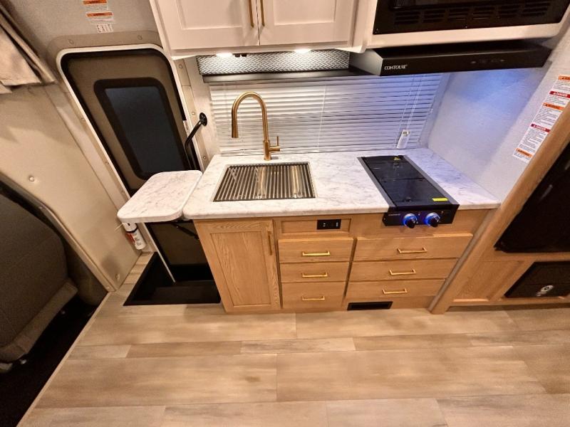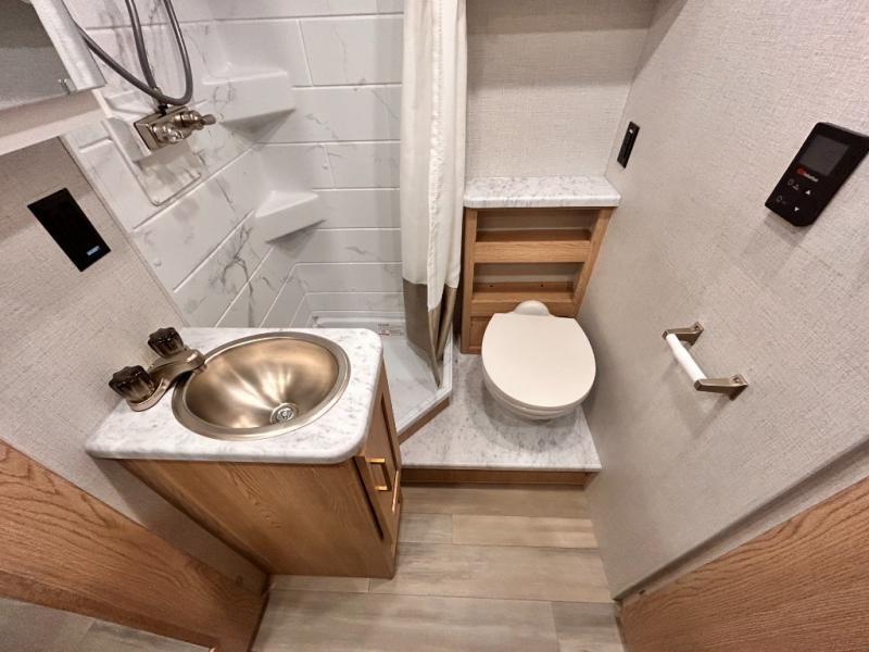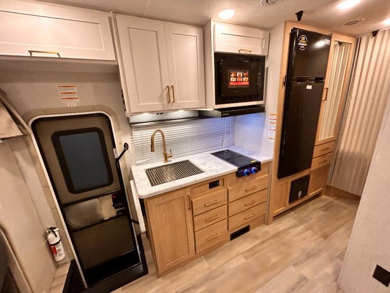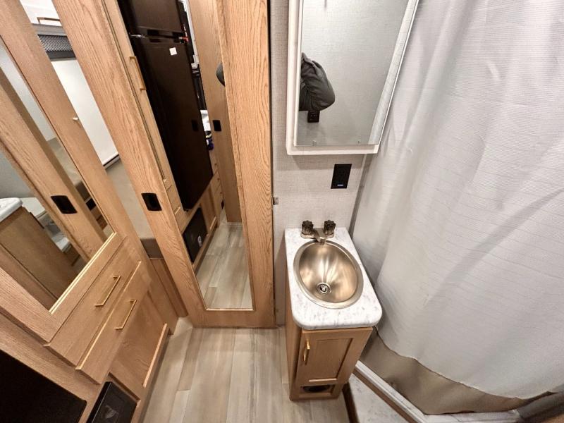 It won't be hard to find comfort in this coach for five! You can freshen up in the mid-coach full bath once you've set up camp, then make lunch on the two burner gas cooktop or convection microwave with an air fryer. There is also a 12V refrigerator for cold items and a flip-up countertop for more space. Whether you dine at the Dream Dinette slide out or take your plate outdoors under the 17' 6" power awning, you're sure to have a great time in this motorhome. The semi-private rear bedroom includes a privacy curtain, two twin beds with a king-size bed conversion, plus TV prep if you want the option to watch shows in bed. And any guests you may have can sleep on the dinette and 52" x 96" cab-over sleeping space!
