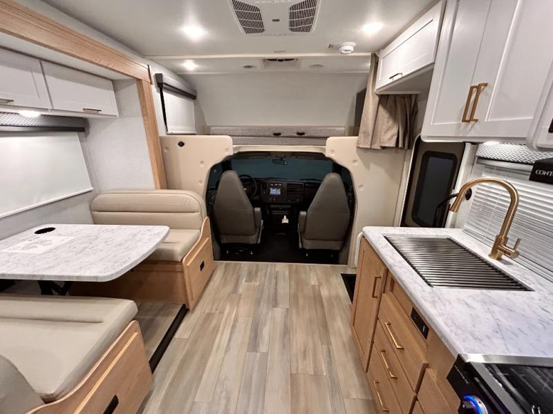 With any Four Winds ESpec Class C gas motorhome by Thor Motor Coach, you will find convenient amenities, a modern interior, and a reliable chassis. There is welded tubular aluminum roof and sidewall cage construction, a one-piece fiberglass front cap, and a one-piece domed roof membrane for added strength. Residential vinyl flooring will be easy to keep clean, and you'll love the sleek look of the Hampton Collection, two-toned cabinets. These motorhomes also include a 50 state 4.0 kW dual gas/LP generator and a 30-amp shoreline power cord to keep you going, along with a tankless water heater and 13,500 roof front A/C to ensure your comfort!