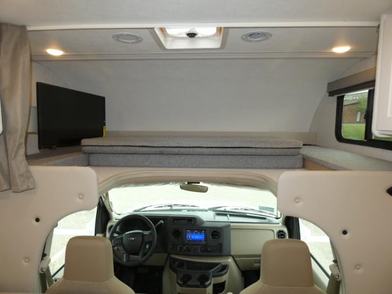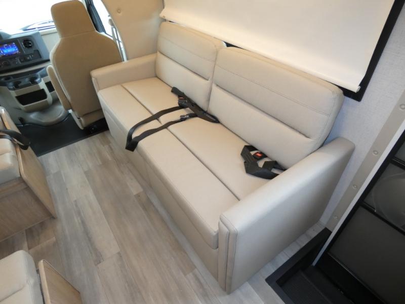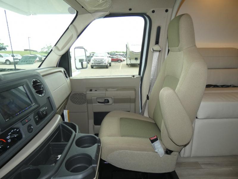 With any Four Winds ESpec Class C gas motorhome by Thor Motor Coach, you will find convenient amenities, a modern interior, and a reliable Ford E-Series chassis to power your adventures. There is welded tubular aluminum roof and sidewall cage construction, a one-piece fiberglass front cap, and a one-piece domed roof membrane for added strength. Residential vinyl flooring will be easy to keep clean, and you'll love the sleek look of the Hampton Collection, two-toned cabinets. These motorhomes also include a 50 state 4.0 kW dual gas/LP generator and a 30-amp shoreline power cord to keep you going, along with a tankless water heater and 13,500 roof front A/C to ensure your comfort!