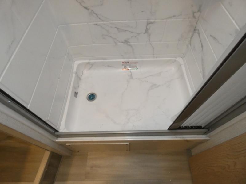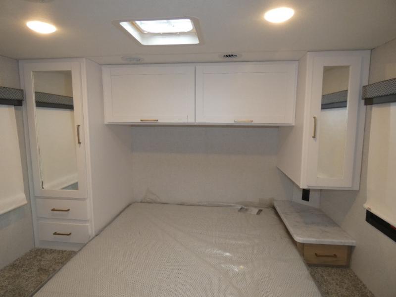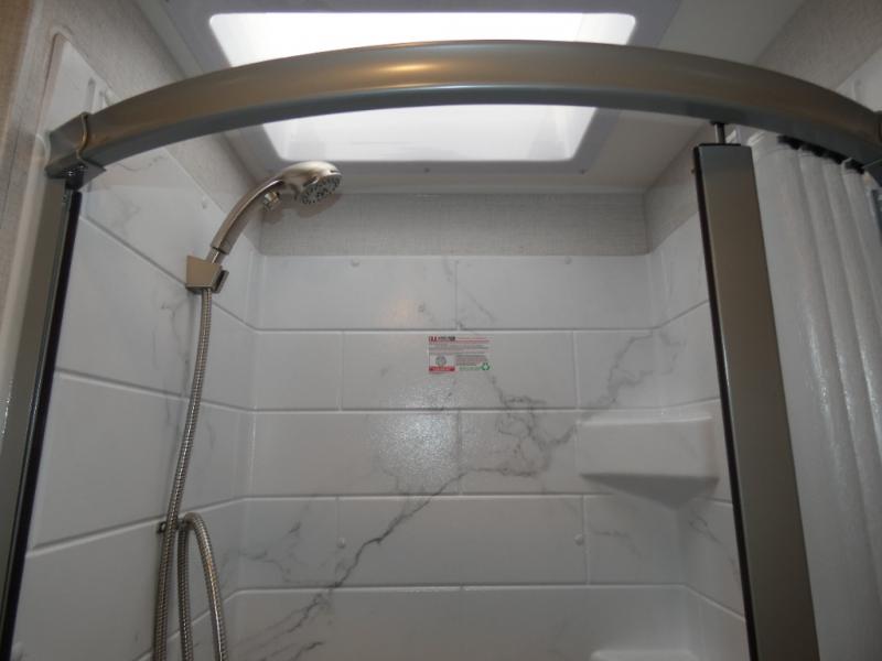 Whether you are couple or a family, this coach offers so many comforts you might never go back home! There is a rear bedroom offering a walk-around queen bed with storage on each side, and a split bathroom allowing two people to get ready at once. You'll love the living room furniture that can double as sleeping space for overnight guests, along with the cab-over bunk. There are full kitchen amenities such as a gas cooktop and microwave, plus the 12V refrigerator is next to the mid-coach entry allowing you to grab a beverage on your way out to relax under the power awning with integrated LED lighting. There is more to enjoy like the 32" Smart TV with swivel for the perfect view of the game, the dream dinette for dining and working, the sofa to relax on, and the cab over bunk to take a nap.