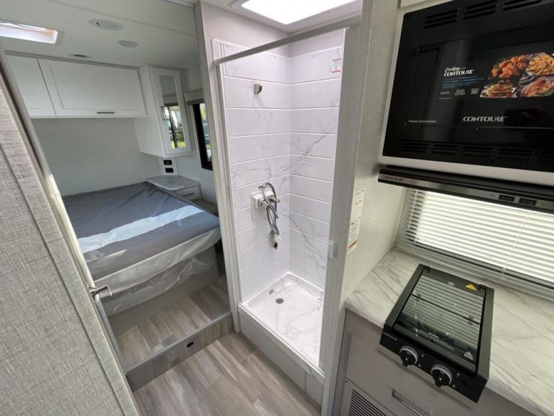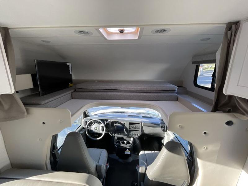 With any Four Winds ESpec Class C gas motorhome by Thor Motor Coach, you will find convenient amenities, a modern interior, and a reliable Ford E-Series chassis, with an optional Chevy chassis on select models to power your adventures. There is welded tubular aluminum roof and sidewall cage construction, a one-piece fiberglass front cap, and a one-piece domed roof membrane for added strength. Residential vinyl flooring will be easy to keep clean, and you'll love the sleek look of the Hampton Collection, two-toned cabinets. These motorhomes also include a 50 state 4.0 kW dual gas/LP generator and a 30-amp shoreline power cord to keep you going, along with a tankless water heater and 13,500 roof front A/C to ensure your comfort!
