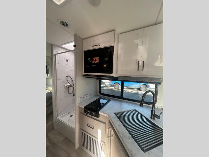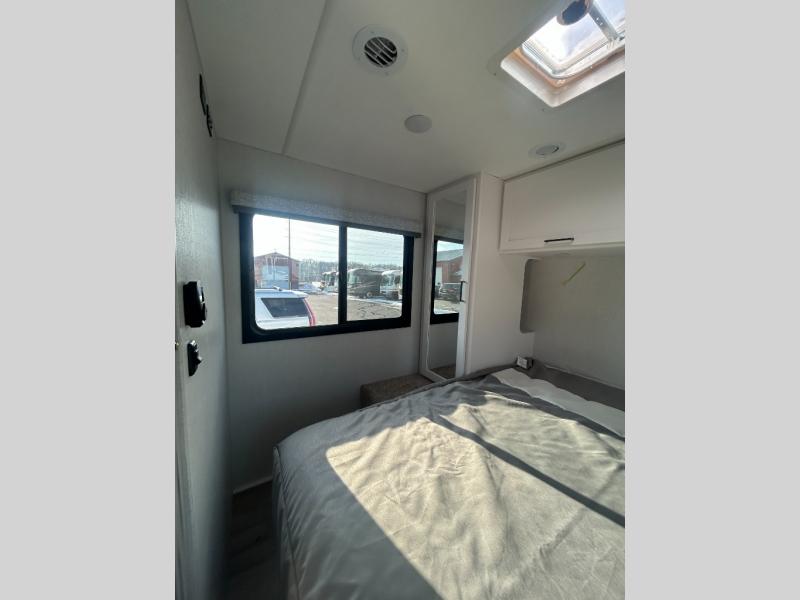 Whether you are couple or a family, this coach offers so many comforts you might never go back home! There is a rear bedroom offering a walk-around queen bed with storage on each side, and a split bathroom allowing two people to get ready at once. You'll love the living room furniture that can double as sleeping space for overnight guests, along with the cab-over bunk. There are full kitchen amenities such as a gas cooktop and microwave, plus the 12V refrigerator is next to the mid-coach entry allowing you to grab a beverage on your way out to relax under the power awning with integrated LED lighting. There is more to enjoy like the 32" Smart TV with swivel for the perfect view of the game, the dream dinette for dining and working, the sofa to relax on, and the cab over bunk to take a nap.