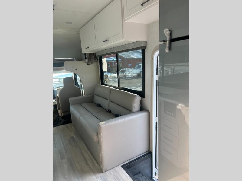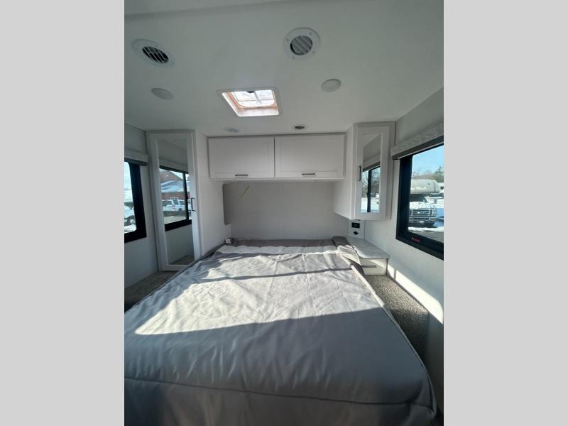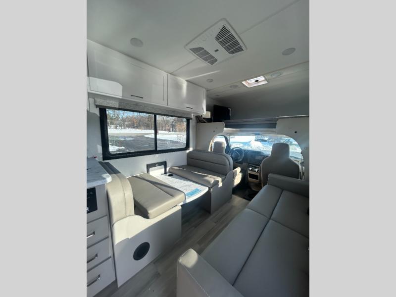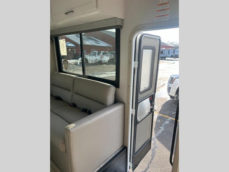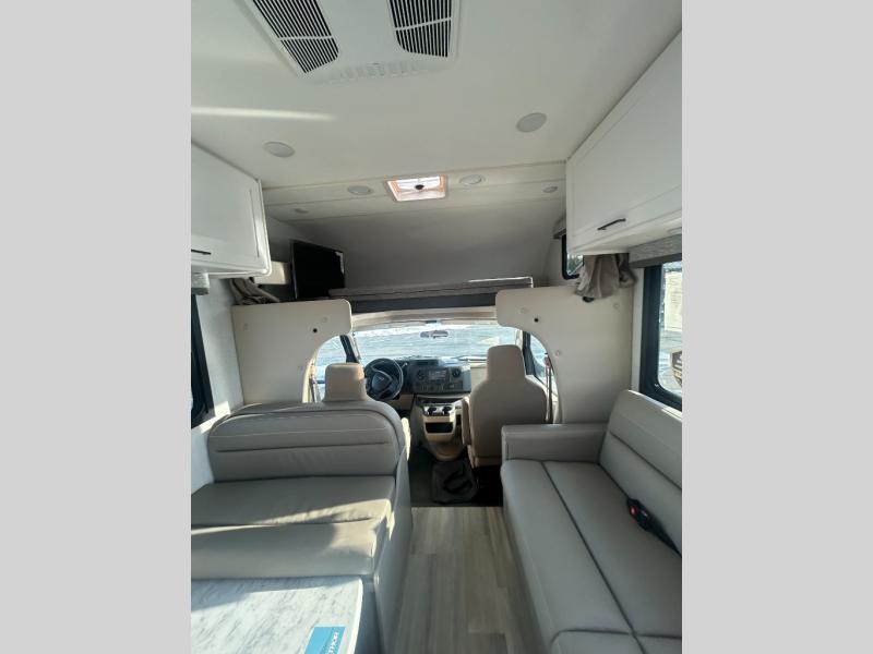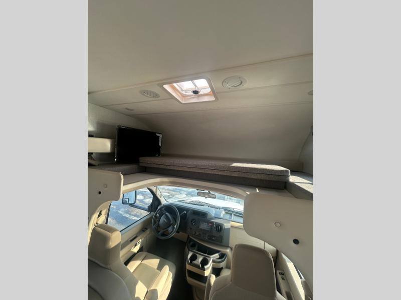 With any Four Winds ESpec Class C gas motorhome by Thor Motor Coach, you will find convenient amenities, a modern interior, and a reliable Ford E-Series chassis, with an optional Chevy chassis on select models to power your adventures. There is welded tubular aluminum roof and sidewall cage construction, a one-piece fiberglass front cap, and a one-piece domed roof membrane for added strength. Residential vinyl flooring will be easy to keep clean, and you'll love the sleek look of the Hampton Collection, two-toned cabinets. These motorhomes also include a 50 state 4.0 kW dual gas/LP generator and a 30-amp shoreline power cord to keep you going, along with a tankless water heater and 13,500 roof front A/C to ensure your comfort!