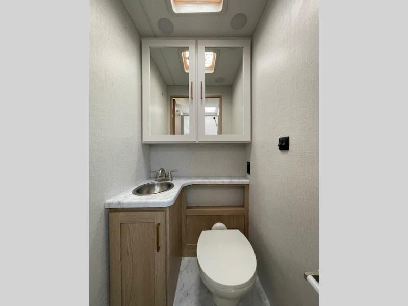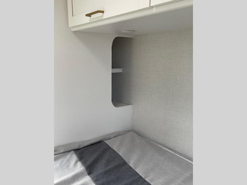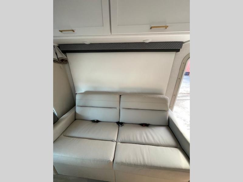 Whether you are couple or a family, this coach offers so many comforts you might never go back home! There is a rear bedroom offering a walk-around queen bed with storage on each side, and a split bathroom allowing two people to get ready at once. You'll love the living room furniture that can double as sleeping space for overnight guests, along with the cab-over bunk. There are full kitchen amenities such as a gas cooktop and microwave, plus the 12V refrigerator is next to the mid-coach entry allowing you to grab a beverage on your way out to relax under the power awning with integrated LED lighting. There is more to enjoy like the 32" Smart TV with swivel for the perfect view of the game, the dream dinette for dining and working, the sofa to relax on, and the cab over bunk to take a nap.