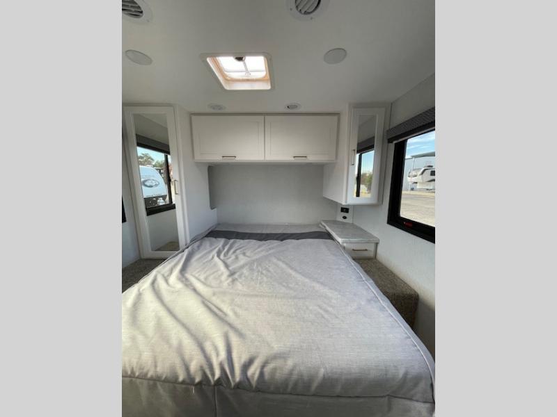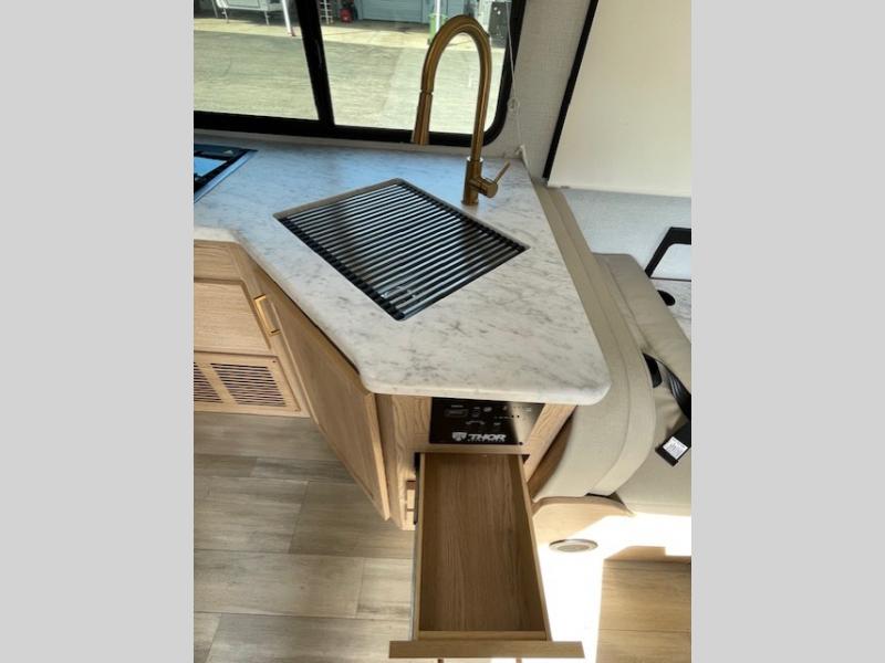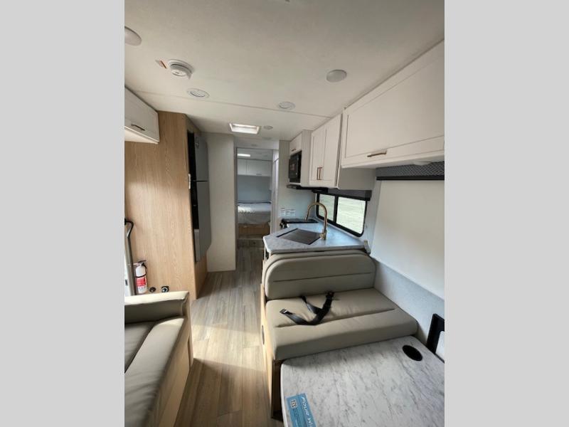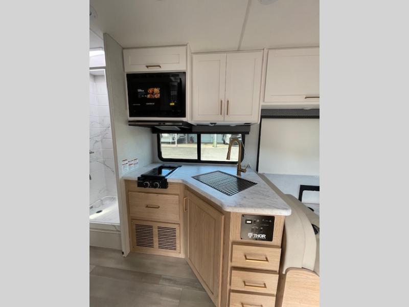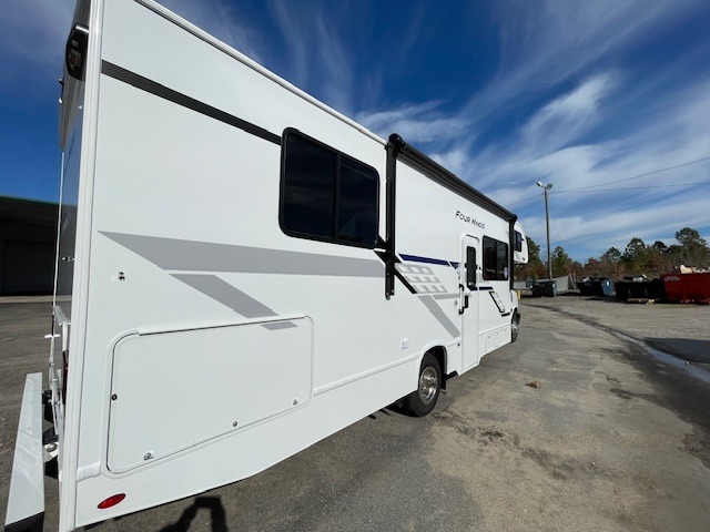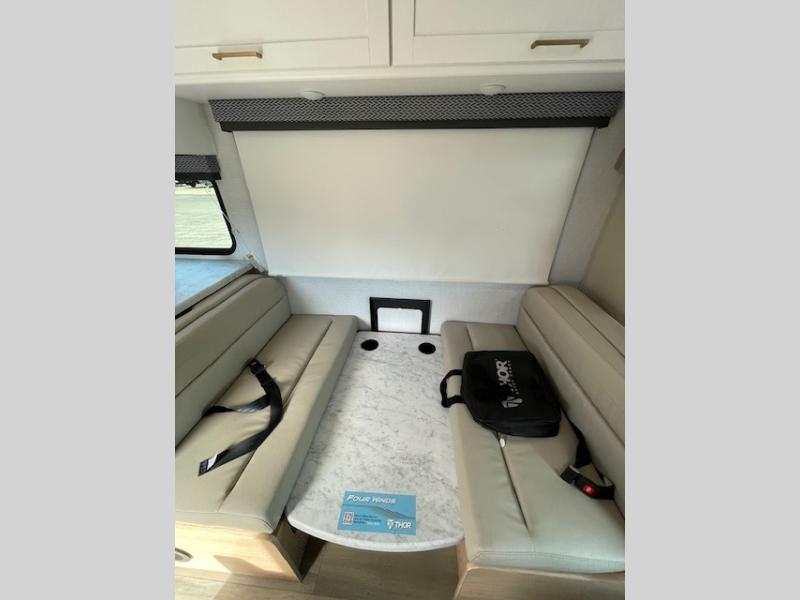 With any Four Winds ESpec Class C gas motorhome by Thor Motor Coach, you will find convenient amenities, a modern interior, and a reliable chassis. There is welded tubular aluminum roof and sidewall cage construction, a one-piece fiberglass front cap, and a one-piece domed roof membrane for added strength. Residential vinyl flooring will be easy to keep clean, and you'll love the sleek look of the Hampton Collection, two-toned cabinets. These motorhomes also include a 50 state 4.0 kW dual gas/LP generator and a 30-amp shoreline power cord to keep you going, along with a tankless water heater and 13,500 roof front A/C to ensure your comfort!