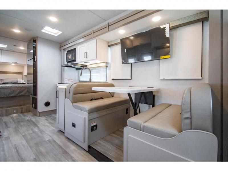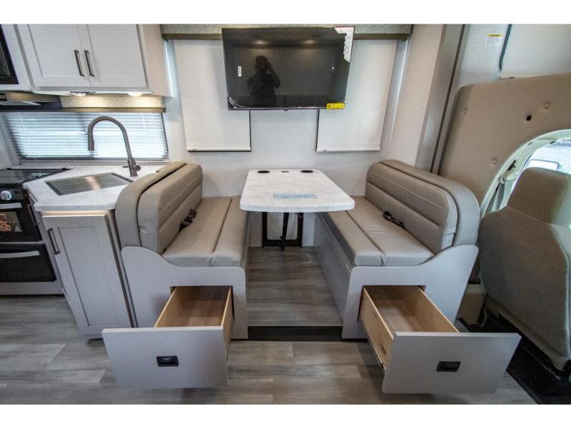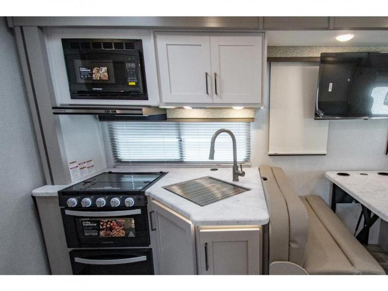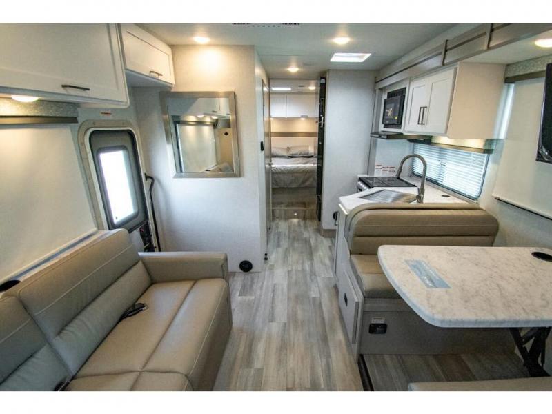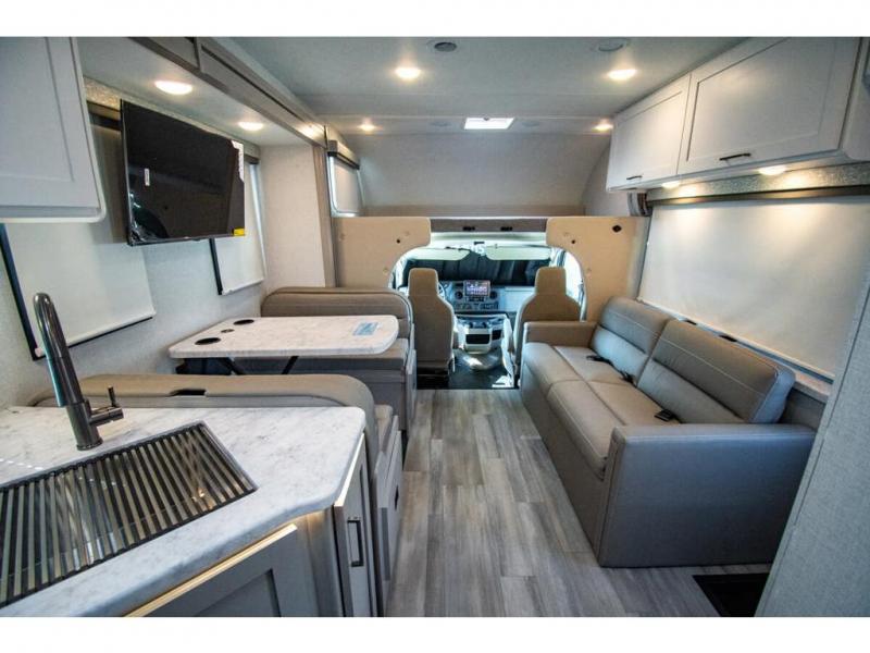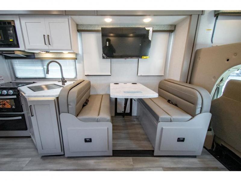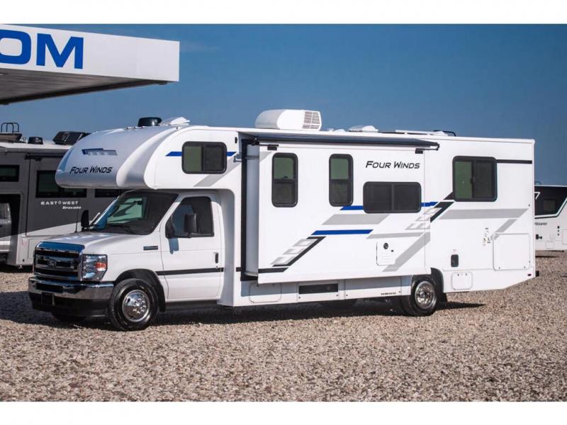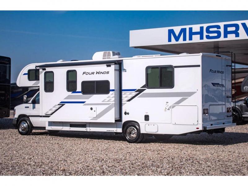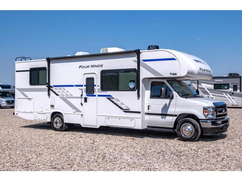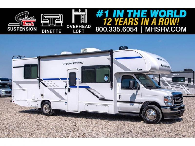 With any Four Winds Class C gas motorhome, you can travel in a trustworthy Ford E-Series chassis with 325HP. Each is built with welded sidewall cage construction and a welded tubular aluminum roof, a one-piece fiberglass cap, and includes a slick fiberglass exterior with graphics package for style and years of enjoyment on the open road. Inside, you will enjoy the well-equipped kitchen, the spacious bathroom, the sleeping accommodations and the Winegard ConnecT 2.0 WiFi/4G/TV antenna that allows you to stay connected. With several floorplans to choose from and options to add, you will surely find one that fits your family's needs or your friend's approval. Choose today!