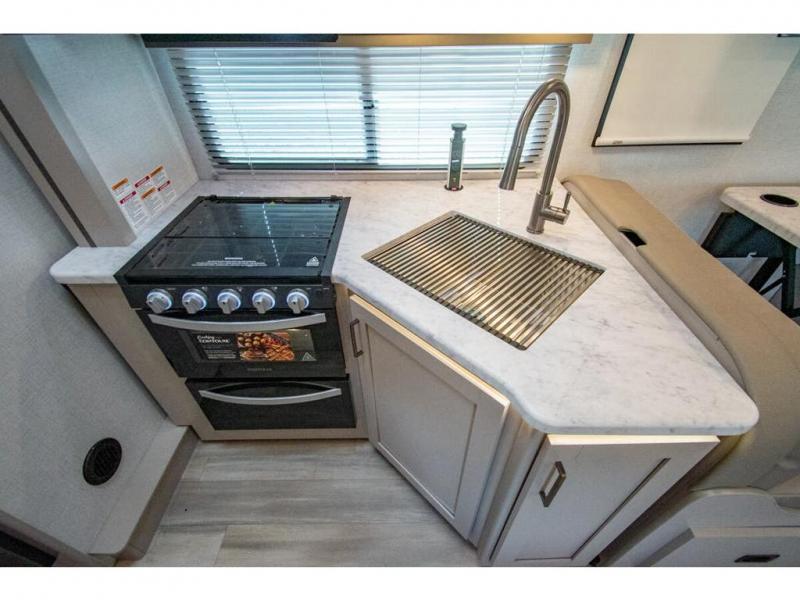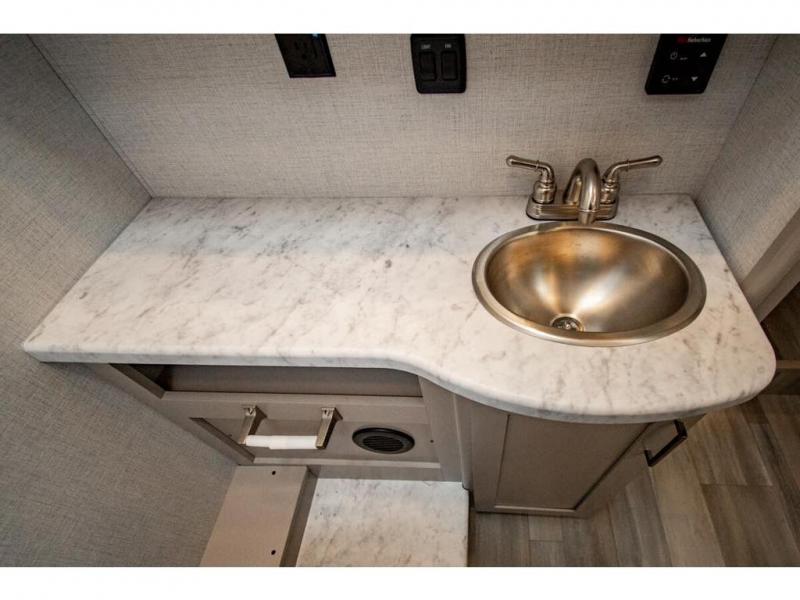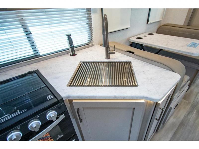 Perfect for a couple or a growing family, this coach will allow you to enjoy inside comforts and outdoor scenery where ever you drive and park! You will have great views out of the many windows when you are indoors, and the power awning offers an outdoor living area protected by the elements when you want some fresh air. The cook will love the large single bowl stainless steel sink with a single handle faucet with a pull-down sprayer when cleaning fruits and veggies, the gas cooktop and microwave when making meals, as well as the 12V refrigerator to hold all the cold items. The slide out creates even more floor space, the furniture offers a place to dine and visit as well as sleep, and the private bedroom with a full bathroom just steps away will complete the deal! You will also appreciate the optional exterior kitchen and optional exterior TV for more choices!