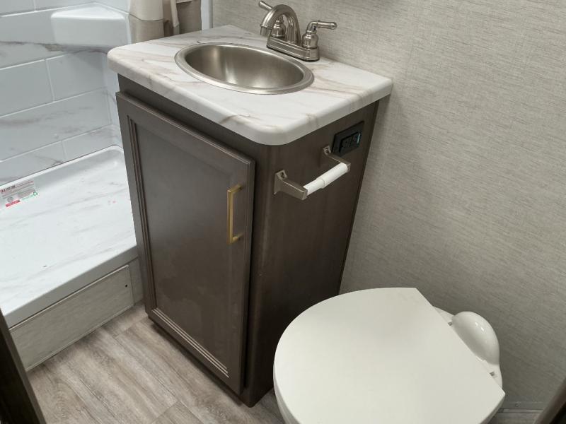 Perfect for a couple or a growing family, this coach will allow you to enjoy inside comforts and outdoor scenery where ever you drive and park! You will have great views out of the many windows when you are indoors, and the power awning offers an outdoor living area protected by the elements when you want some fresh air. The cook will love the large single bowl stainless steel sink with a single handle faucet with a pull-down sprayer when cleaning fruits and veggies, the gas cooktop and microwave when making meals, as well as the 12V refrigerator to hold all the cold items. The slide out creates even more floor space, the furniture offers a place to dine and visit as well as sleep, and the private bedroom with a full bathroom just steps away will complete the deal! You will also appreciate the optional exterior kitchen and optional exterior TV for more choices!