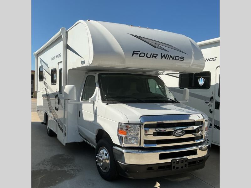 With any Four Winds Class C gas motorhome, you can travel in a trustworthy Ford E-Series chassis with 325HP. Each is built with welded sidewall cage construction and a welded tubular aluminum roof, a one-piece fiberglass cap, and includes a slick fiberglass exterior with graphics package for style and years of enjoyment on the open road. Inside, you will enjoy the well-equipped kitchen, the spacious bathroom, the sleeping accommodations and the Winegard ConnecT 2.0 WiFi/4G/TV antenna that allows you to stay connected. With several floorplans to choose from and options to add, you will surely find one that fits your family's needs or your friend's approval. Choose today!