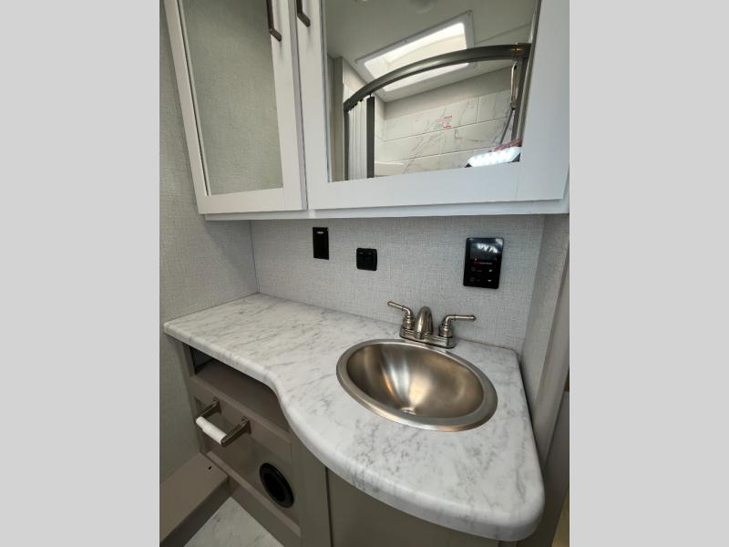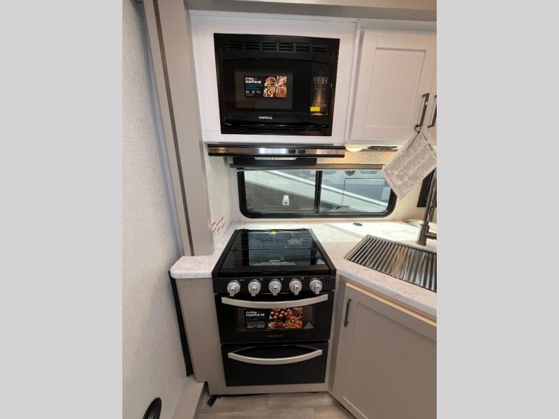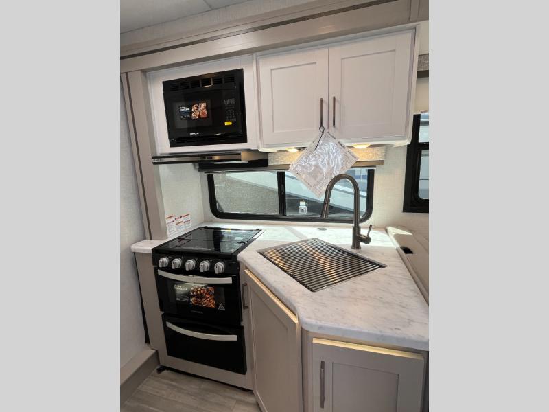 Perfect for a couple or a growing family, this coach will allow you to enjoy inside comforts and outdoor scenery where ever you drive and park! You will have great views out of the many windows when you are indoors, and the power awning offers an outdoor living area protected by the elements when you want some fresh air. The cook will love the large single bowl stainless steel sink with a single handle faucet with a pull-down sprayer when cleaning fruits and veggies, the gas cooktop and microwave when making meals, as well as the 12V refrigerator to hold all the cold items. The slide out creates even more floor space, the furniture offers a place to dine and visit as well as sleep, and the private bedroom with a full bathroom just steps away will complete the deal! You will also appreciate the optional exterior kitchen and optional exterior TV for more choices!