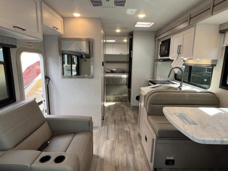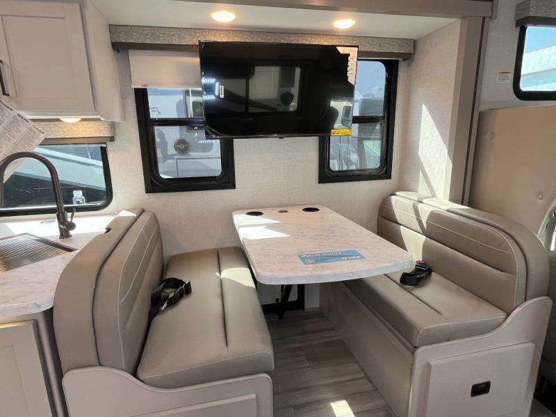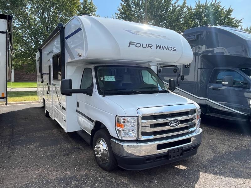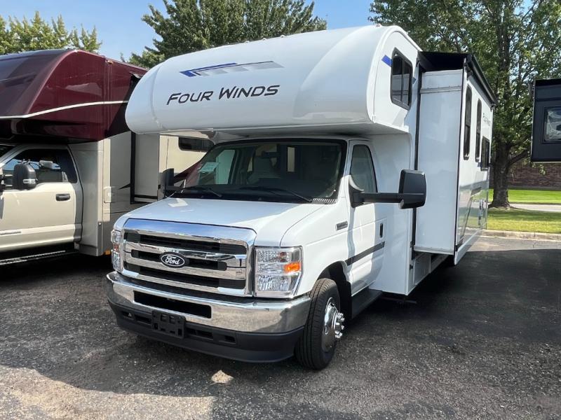 With any Four Winds Class C gas motorhome, you can travel in a trustworthy Ford E-Series chassis with 325HP. Each is built with welded sidewall cage construction and a welded tubular aluminum roof, a one-piece fiberglass cap, and includes a slick fiberglass exterior with graphics package for style and years of enjoyment on the open road. Inside, you will enjoy the well-equipped kitchen, the spacious bathroom, the sleeping accommodations and the Winegard ConnecT 2.0 WiFi/4G/TV antenna that allows you to stay connected. With several floorplans to choose from and options to add, you will surely find one that fits your family's needs or your friend's approval. Choose today!