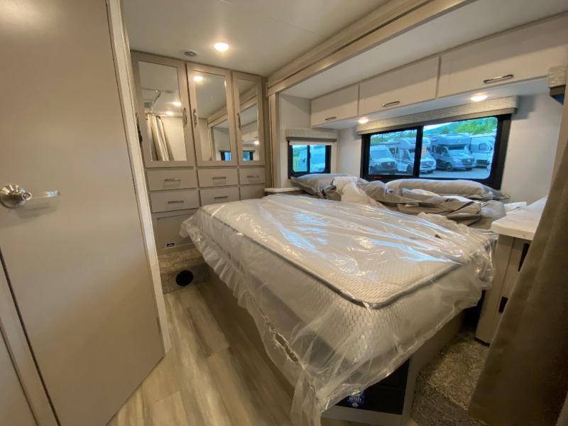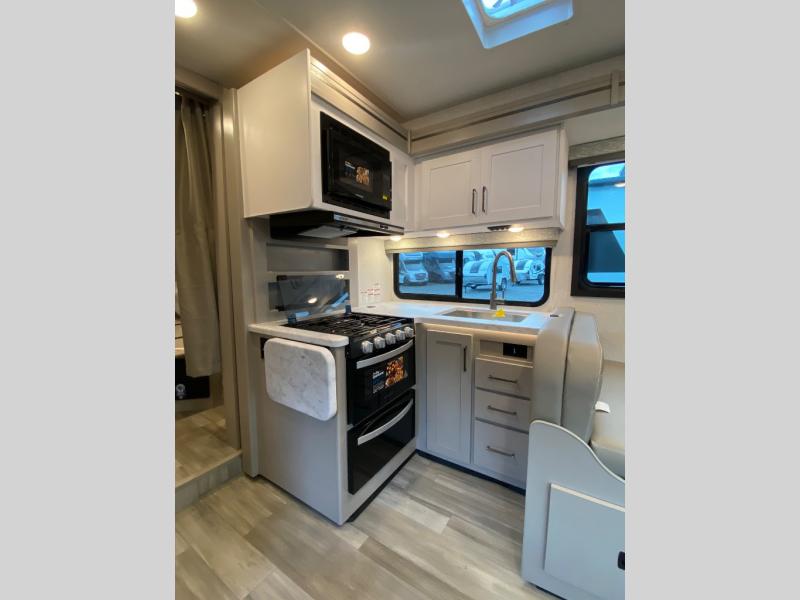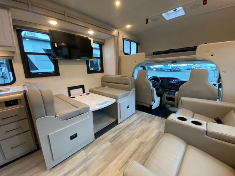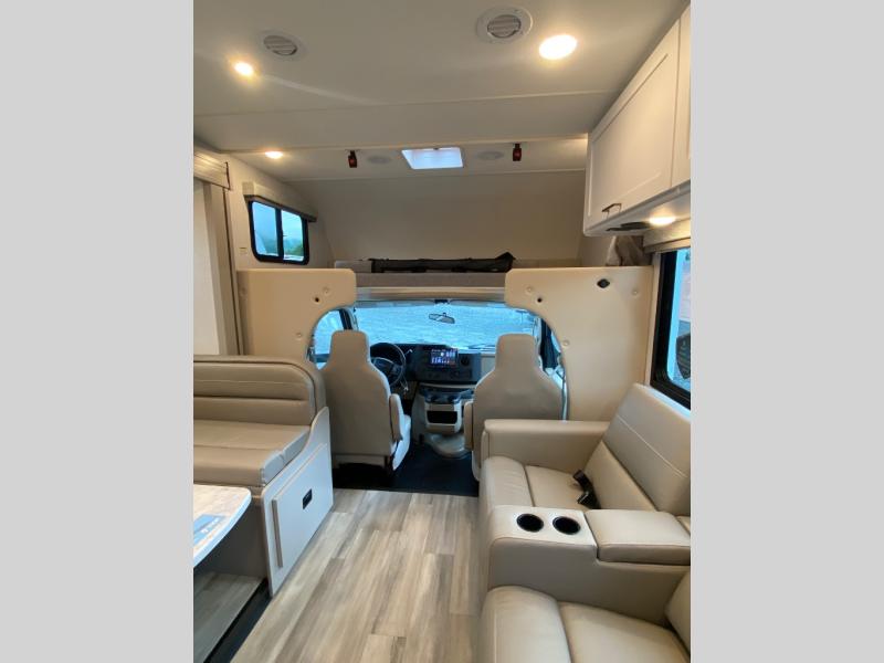 With any Four Winds Class C gas motorhome, you can travel in a trustworthy Ford E-Series chassis with 325HP, or a Chevrolet chassis with 401HP if you choose that option which is available on several models. Each is built with welded sidewall cage construction and a welded tubular aluminum roof, a one-piece fiberglass cap, and includes a slick fiberglass exterior with graphics package for style and years of enjoyment on the open road. Inside, you will enjoy the well-equipped kitchen, the spacious bathroom, the sleeping accommodations and the Winegard ConnecT 2.0 WiFi/4G/TV antenna that allows you to stay connected. With several floorplans to choose from and options to add, you will surely find one that fits your family's needs or your friend's approval. Choose today!