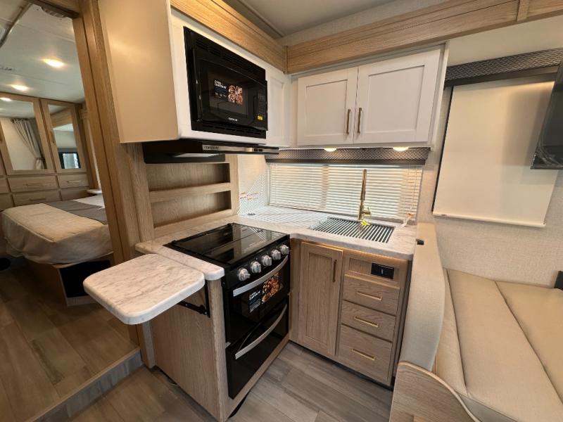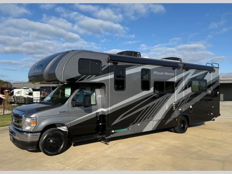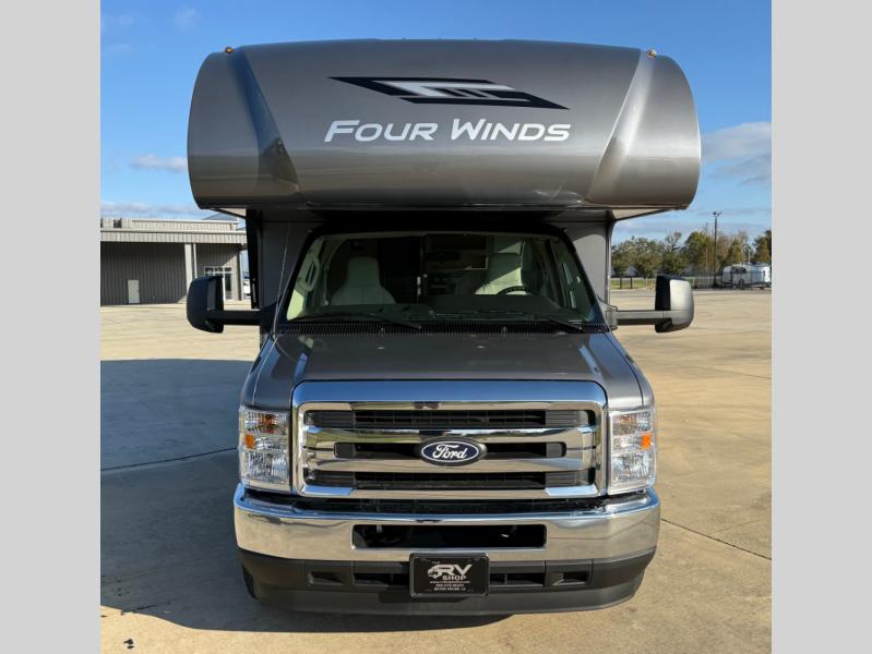 With any Four Winds Class C gas motorhome, you can travel in a trustworthy Ford E-Series chassis with 325HP, or a Chevrolet chassis with 401HP if you choose that option which is available on several models. Each is built with welded sidewall cage construction and a welded tubular aluminum roof, a one-piece fiberglass cap, and includes a slick fiberglass exterior with graphics package for style and years of enjoyment on the open road. Inside, you will enjoy the well-equipped kitchen, the spacious bathroom, the sleeping accommodations and the Winegard ConnecT 2.0 WiFi/4G/TV antenna that allows you to stay connected. With several floorplans to choose from and options to add, you will surely find one that fits your family's needs or your friend's approval. Choose today!