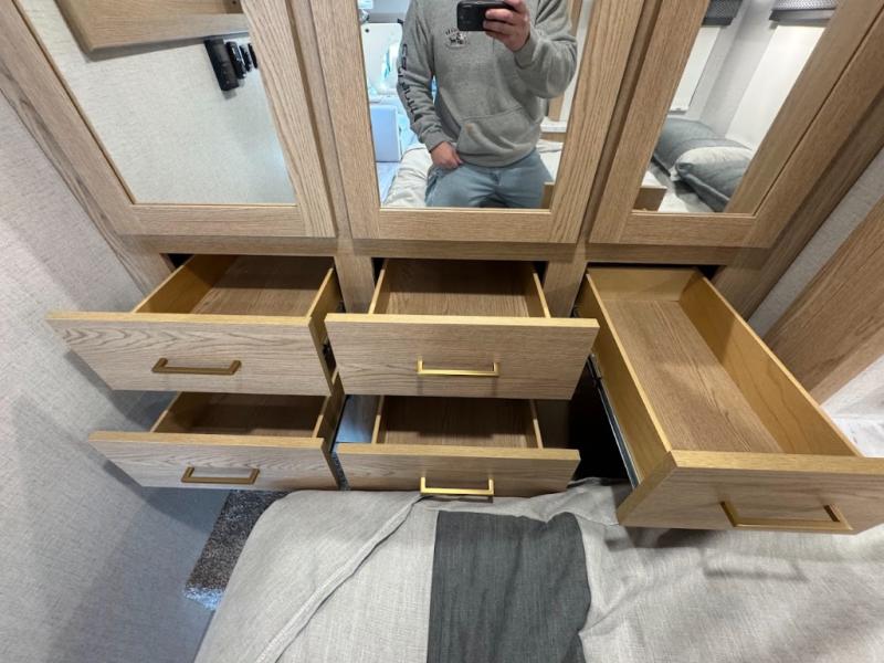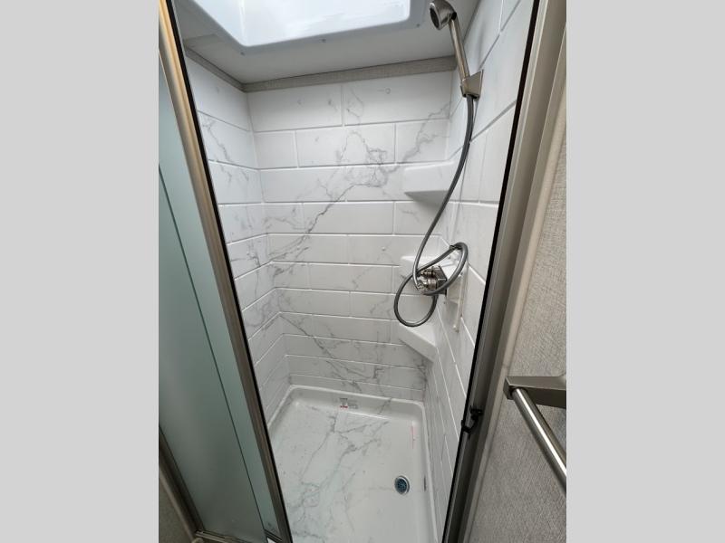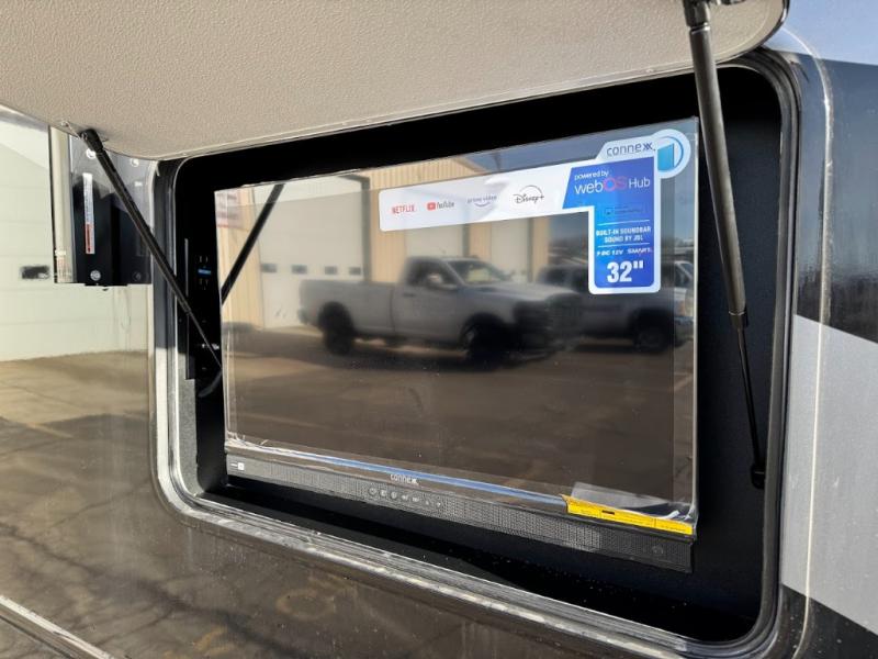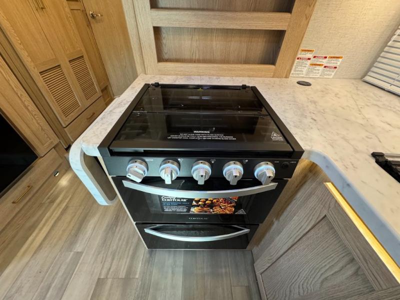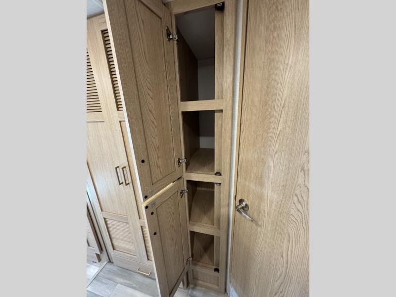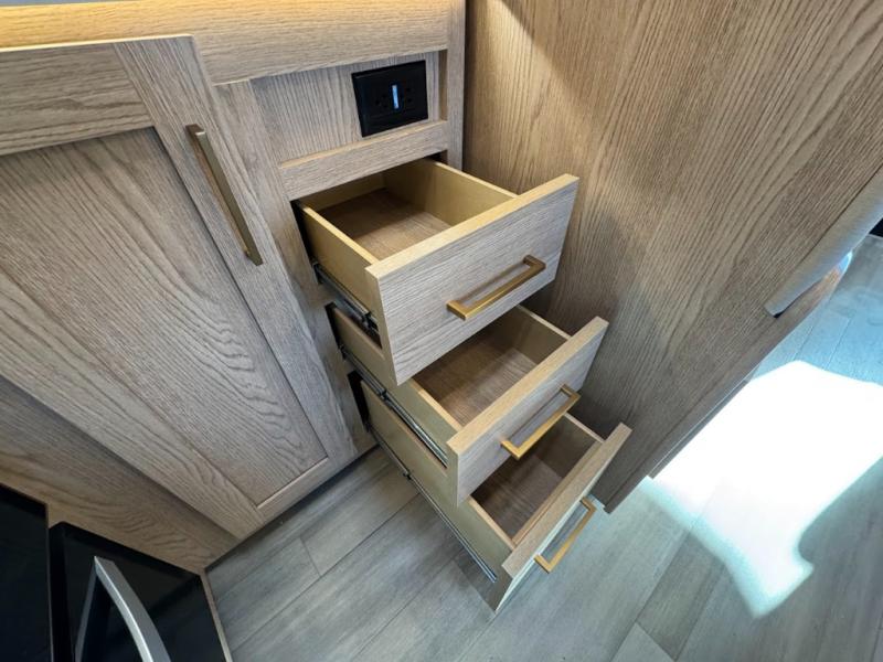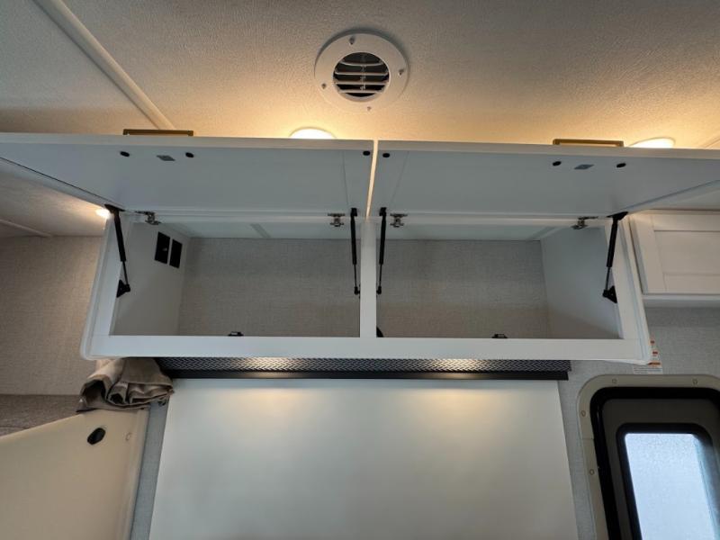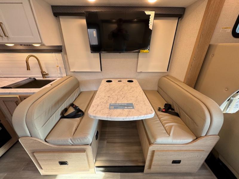 Easily head out for fun at a state park, the lake or your friend's ranch. This coach is easy to maneuver on the road or in town thanks to its compact size, yet has so many conveniences, you might not return home. The front cab over bunk is a perfect sleeping space for guests, the 40" Smart TV allows you to watch shows when you want some inside time, and the 71" Dream Dinette gives you a place to dine and relax. The cook will love all the kitchen amenities at their fingertips, plus the flip-up countertop extension is super handy. The rear corner bedroom offers a king bed slide for more floor space, a privacy curtain and a closet, plus the full bathroom is a few steps away.