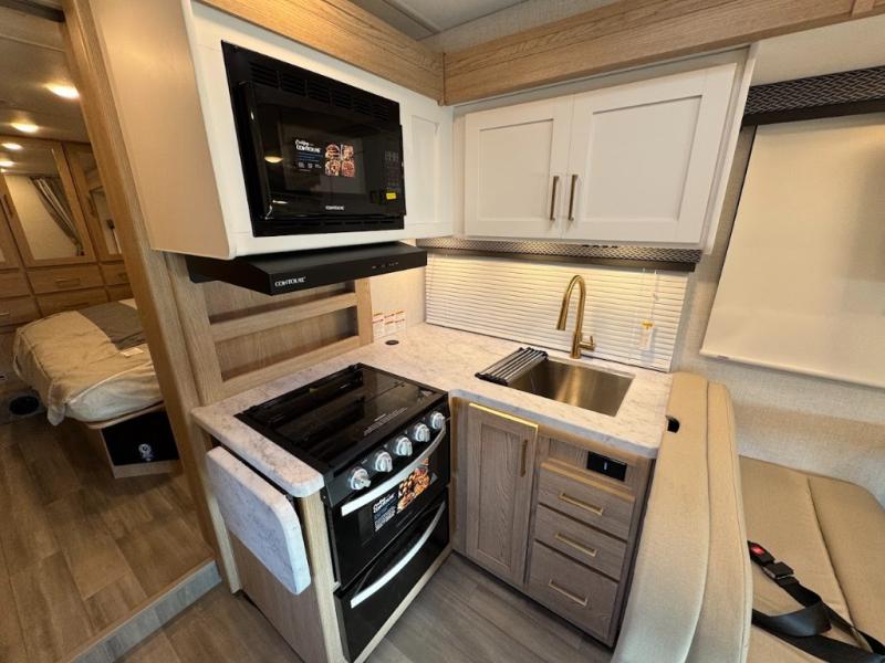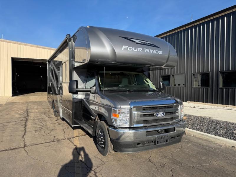 With any Four Winds Class C gas motorhome, you can travel in a trustworthy Ford E-Series chassis with 325HP, or a Chevrolet chassis with 401HP if you choose that option which is available on several models. Each is built with welded sidewall cage construction and a welded tubular aluminum roof, a one-piece fiberglass cap, and includes a slick fiberglass exterior with graphics package for style and years of enjoyment on the open road. Inside, you will enjoy the well-equipped kitchen, the spacious bathroom, the sleeping accommodations and the Winegard ConnecT 2.0 WiFi/4G/TV antenna that allows you to stay connected. With several floorplans to choose from and options to add, you will surely find one that fits your family's needs or your friend's approval. Choose today!