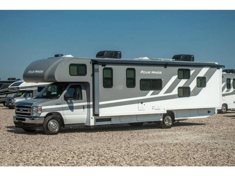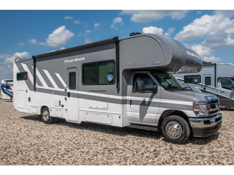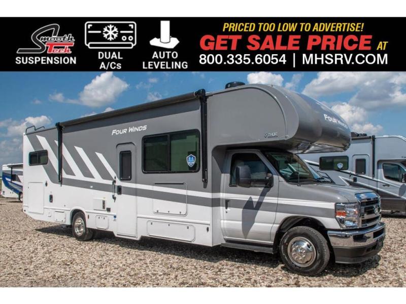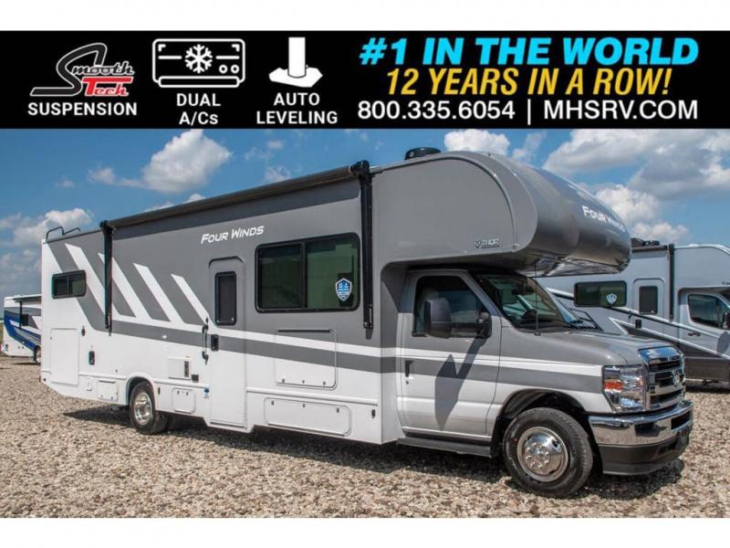MSRP $176,764. The New 2026 Thor Motor Coach Four Winds® Class C RV 31EV "Victory Series" is approximately 32 feet 8 inches in length featuring the new Ford® chassis with a 7.3L V8 engine and SmoothTECH Suspension. New features for the Four Winds include a new dash stereo, all new exterior designs, new flooring, decorative kitchen glass inserts, new valance & headboards, LED taillights and much more. Options include the auto leveling jacks, heated remote exterior mirrors with side view cameras, leatherette driver and passenger captains chairs, cabover child safety net, exterior entertainment center and partial paint. The Four Winds RV has an incredible list of standard features including power windows and locks, power patio awning with integrated LED lighting, roof ladder, in-dash media center AM/FM & Bluetooth, power vent in bath, skylight above shower, Onan generator, cab A/C and so much more. Shop hundreds of class C gas RVs at 1 location! Choose from Fleetwood Altitude - Gulf Stream BT Cruiser - Thor Chateau - Four Winds - Geneva and Quantum - Entegra Coach Odyssey Odyssey SE and Esteem - East to West Entrada - Forest River Forester - Forester LE - Nexus Phantom - Viper and much more. We also sell quality pre-owned models such as Jayco Greyhawk – Redhawk - Redhawk SE - Thor Magnitude - Winnebago Spirit - and Minnie Winnie - Coachmen Freelander and Leprechaun - Forest River Sunseeker Classic - Sunseeker LE – Solera - Holiday Rambler Incline and much more. Visit MHSRV.com for our complete line-up and the sale prices that have made us the #1 volume selling motor home dealership in the world 12 years in a row! For additional details on this unit and our entire inventory including brochures, window sticker, videos, photos, reviews & testimonials as well as additional information about Motor Home Specialist and our manufacturers please visit us at MHSRV.com or call 800-335-6054. At Motor Home Specialist, we DO NOT charge any prep or orientation fees like you will find at other dealerships. All sale prices include a 200-point inspection, interior & exterior wash, detail service and a fully automated high-pressure rain booth test and coach wash that is a standout service unlike that of any other in the industry. You will also receive a thorough coach orientation with an MHSRV technician, a night stay in our delivery park featuring landscaped and covered pads with full hook-ups and much more! Read Thousands upon Thousands of 5-Star Reviews at MHSRV.com and See What They Had to Say About Their Experience at Motor Home Specialist. WHY PAY MORE? WHY SETTLE FOR LESS?