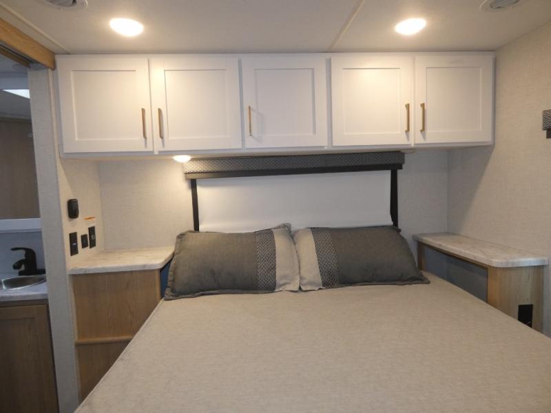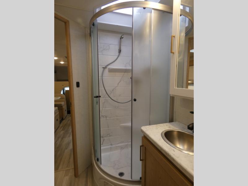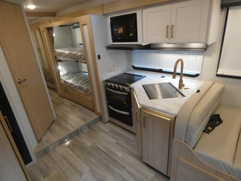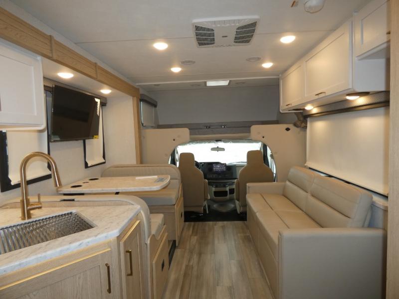 With any Four Winds Class C gas motorhome, you can travel in a trustworthy Ford E-Series chassis with 325HP. Each is built with welded sidewall cage construction and a welded tubular aluminum roof, a one-piece fiberglass cap, and includes a slick fiberglass exterior with graphics package for style and years of enjoyment on the open road. Inside, you will enjoy the well-equipped kitchen, the spacious bathroom, the sleeping accommodations and the Winegard ConnecT 2.0 WiFi/4G/TV antenna that allows you to stay connected. Choose today!