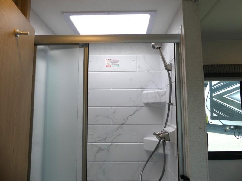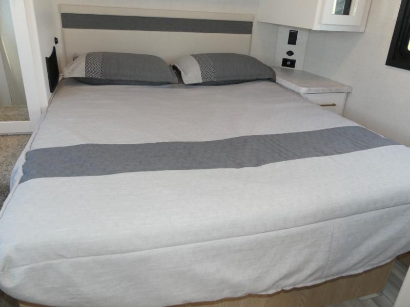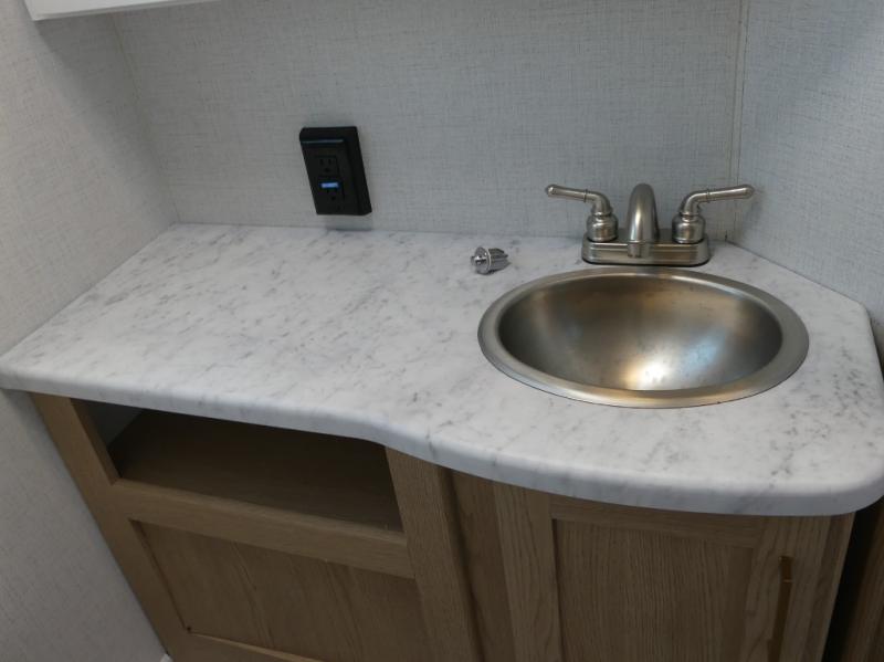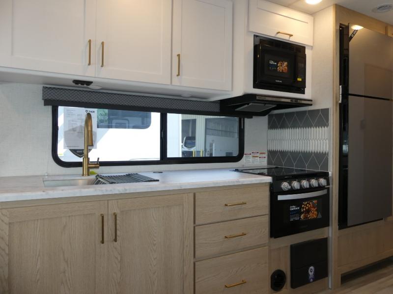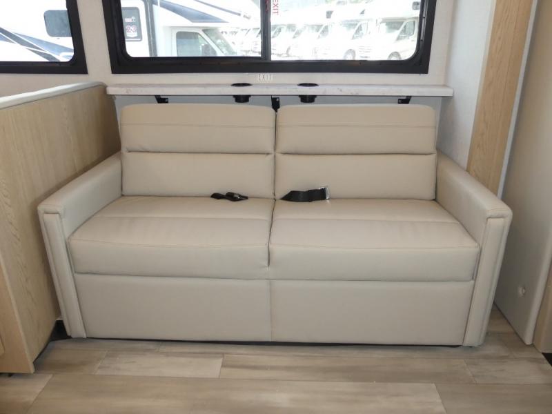 You and your spouse can go on your best adventures in this motorhome! You will have great views out of the many windows when you are indoors, and the power awning offers an outdoor living area protected by the elements when you want some fresh air. The cook will love the large single bowl stainless steel sink with a single handle faucet with a pull-down sprayer when cleaning fruits and veggies, the gas cooktop and microwave when making meals, as well as the 12V refrigerator to hold all the cold items. The slide out creates even more floor space, the 71" Dream Dinette and 66" jackknife sofa offers a place to dine and visit as well as sleep, and the rear private bedroom with a full bathroom just steps away will complete the deal! You will also appreciate the optional exterior TV to watch your favorite shows while breathing in fresh air!