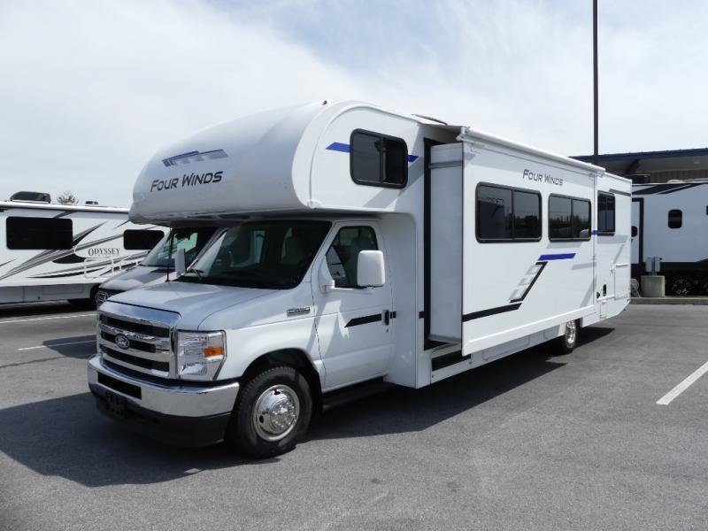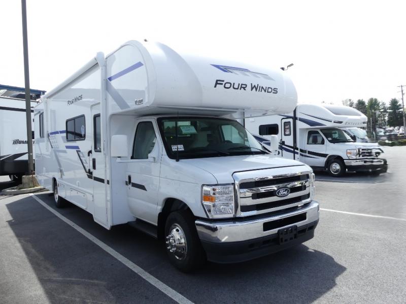 With any Four Winds Class C gas motorhome, you can travel in a trustworthy Ford E-Series chassis with 325HP. Each is built with welded sidewall cage construction and a welded tubular aluminum roof, a one-piece fiberglass cap, and includes a slick fiberglass exterior with graphics package for style and years of enjoyment on the open road. Inside, you will enjoy the well-equipped kitchen, the spacious bathroom, the sleeping accommodations and the Winegard ConnecT 2.0 WiFi/4G/TV antenna that allows you to stay connected. With several floorplans to choose from, you will surely find one that fits your family's needs or your friend's approval. Choose today!