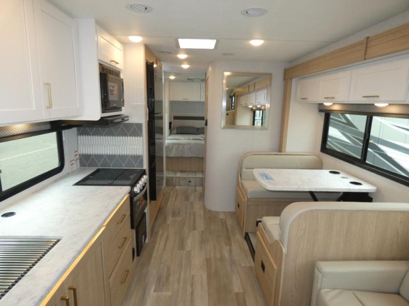With any Four Winds Class C gas motorhome, you can travel in a trustworthy Ford E-Series chassis with 325HP. Each is built with welded sidewall cage construction and a welded tubular aluminum roof, a one-piece fiberglass cap, and includes a slick fiberglass exterior with graphics package for style and years of enjoyment on the open road. Inside, you will enjoy the well-equipped kitchen, the spacious bathroom, the sleeping accommodations and the Winegard ConnecT 2.0 WiFi/4G/TV antenna that allows you to stay connected. Choose today!