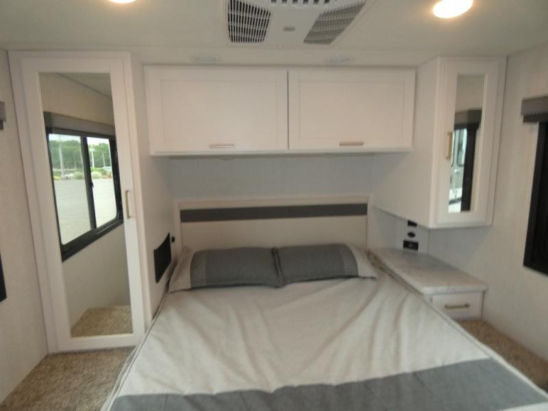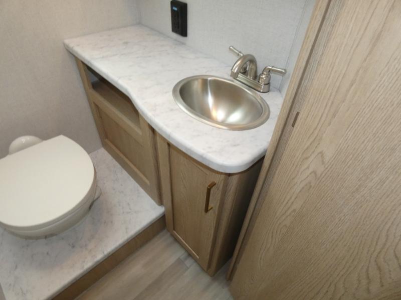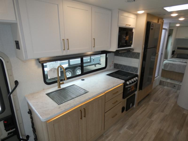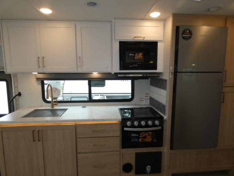 You and your spouse can go on your best adventures in this motorhome! You will have great views out of the many windows when you are indoors, and the power awning offers an outdoor living area protected by the elements when you want some fresh air. The cook will love the large single bowl stainless steel sink with a single handle faucet with a pull-down sprayer when cleaning fruits and veggies, the gas cooktop and microwave when making meals, as well as the 12V refrigerator to hold all the cold items. The slide out creates even more floor space, the 71" Dream Dinette and 66" jackknife sofa offers a place to dine and visit as well as sleep, and the rear private bedroom with a full bathroom just steps away will complete the deal!