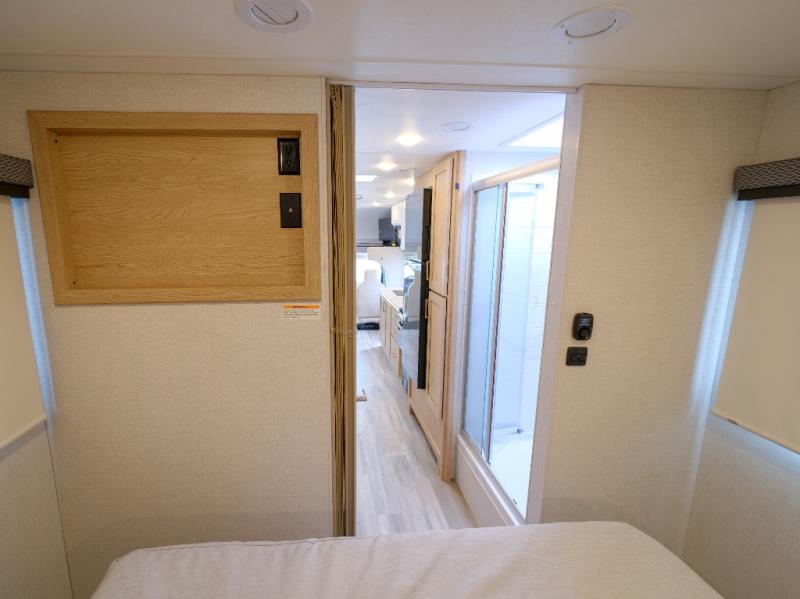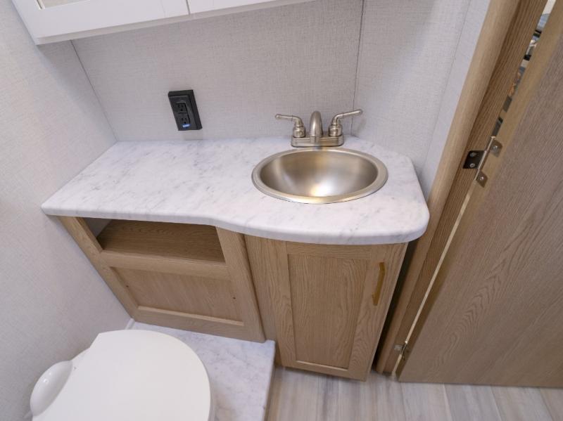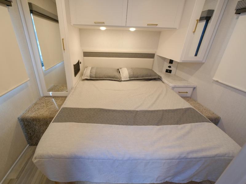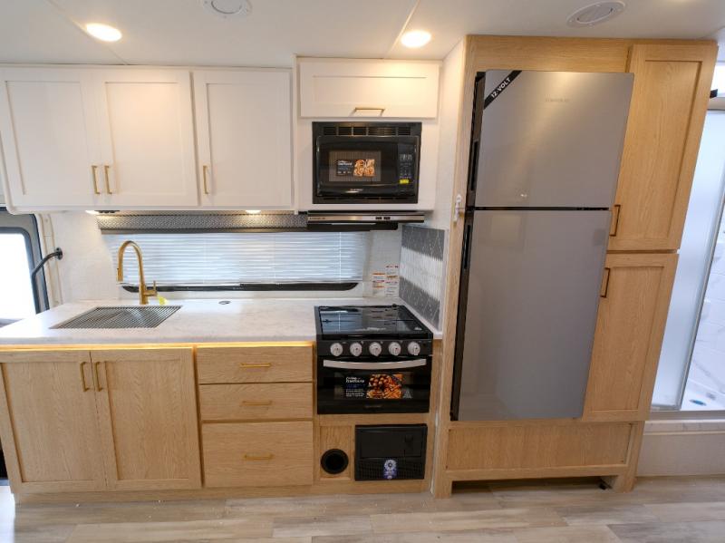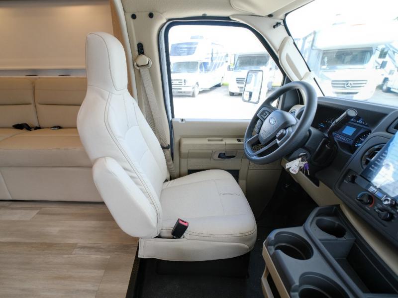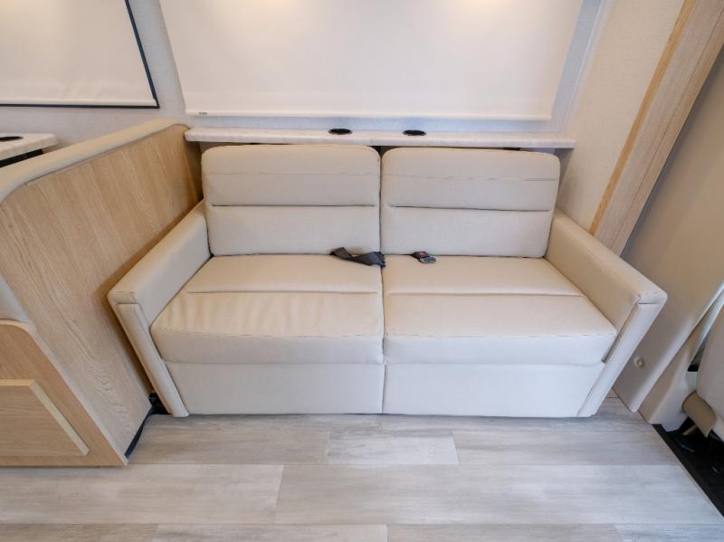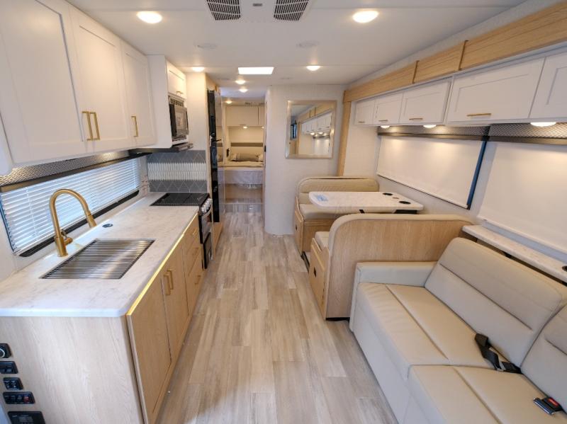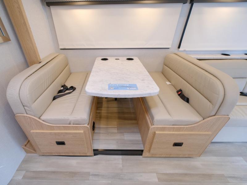 You and your spouse can go on your best adventures in this motorhome! You will have great views out of the many windows when you are indoors, and the power awning offers an outdoor living area protected by the elements when you want some fresh air. The cook will love the large single bowl stainless steel sink with a single handle faucet with a pull-down sprayer when cleaning fruits and veggies, the gas cooktop and microwave when making meals, as well as the 12V refrigerator to hold all the cold items. The slide out creates even more floor space, the 71" Dream Dinette and 66" jackknife sofa offers a place to dine and visit as well as sleep, and the rear private bedroom with a full bathroom just steps away will complete the deal!