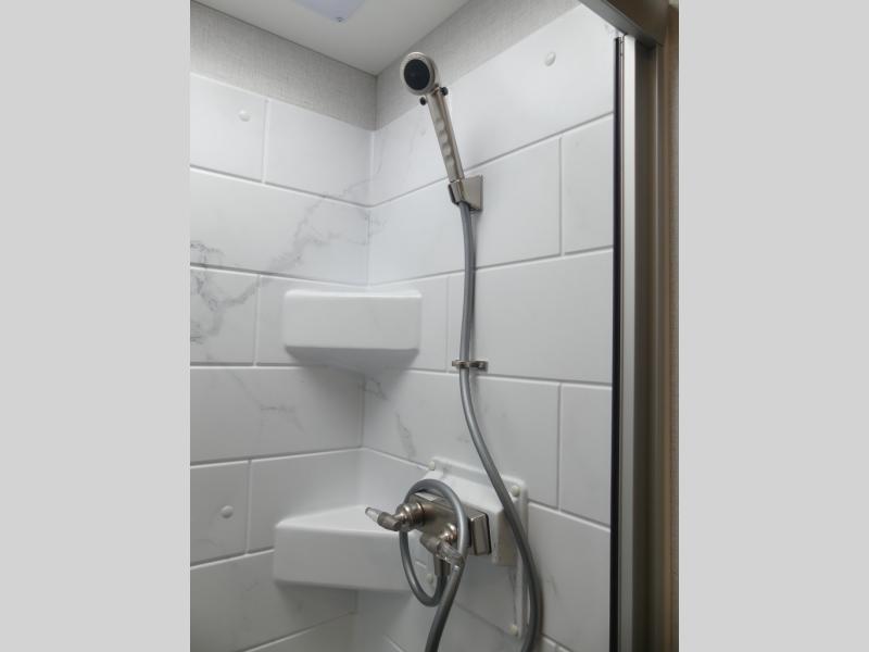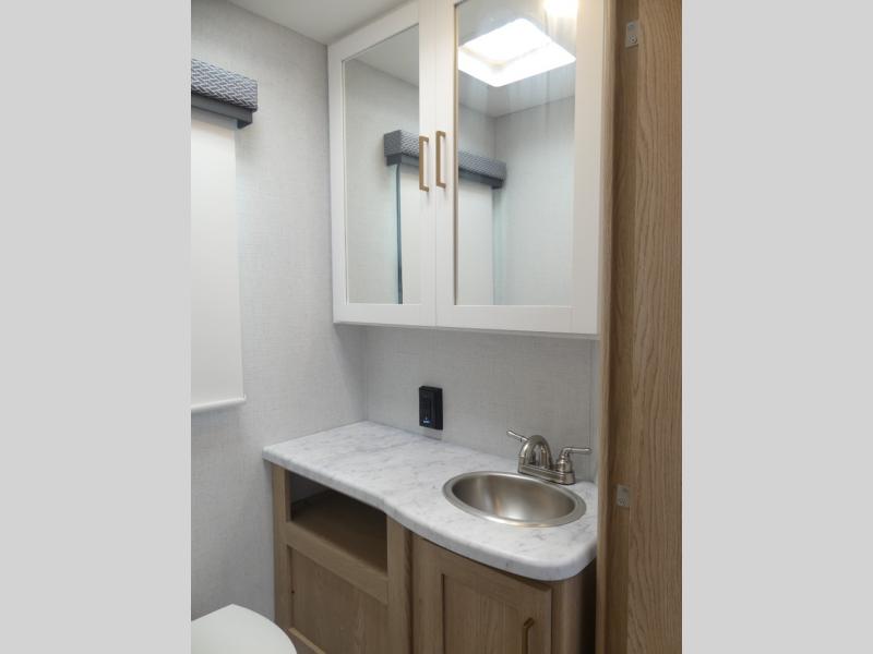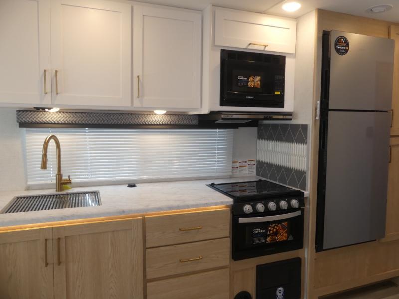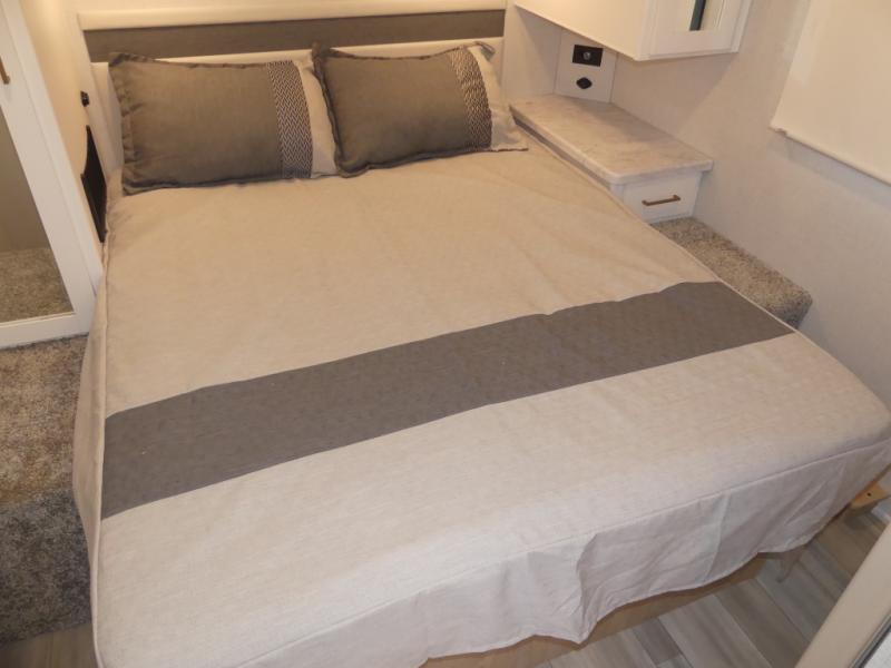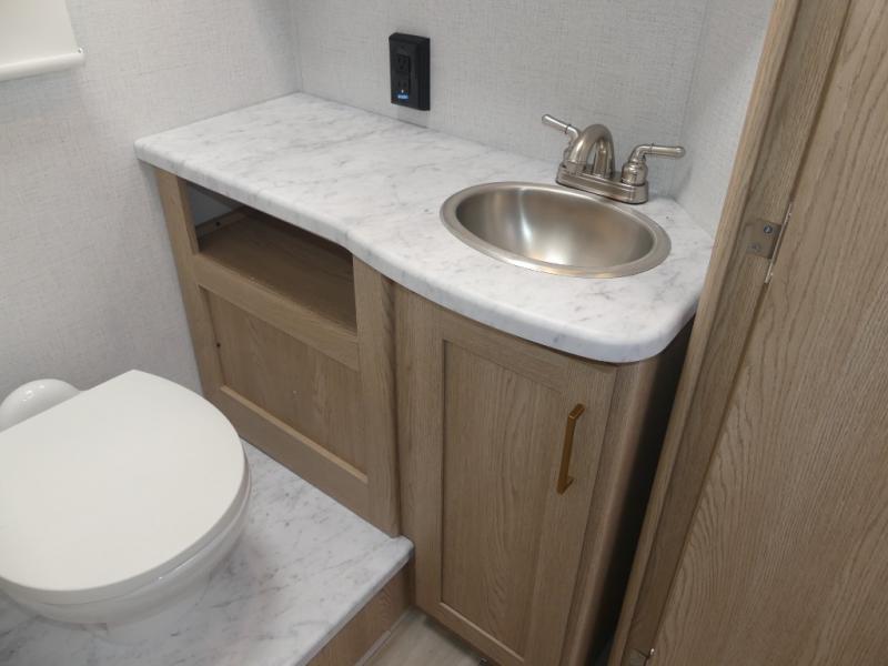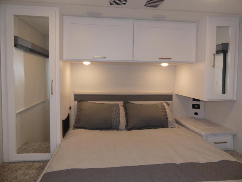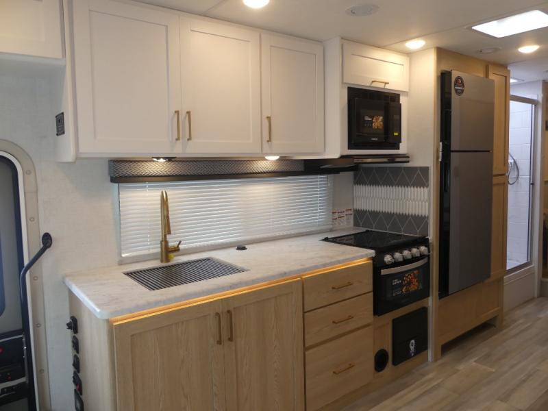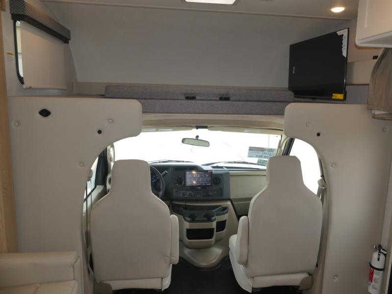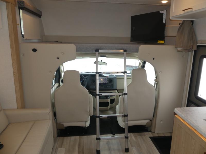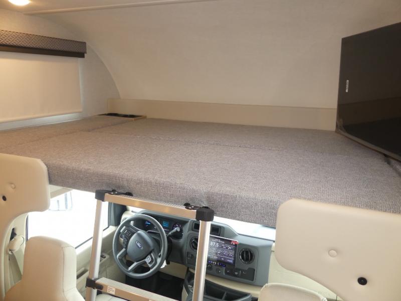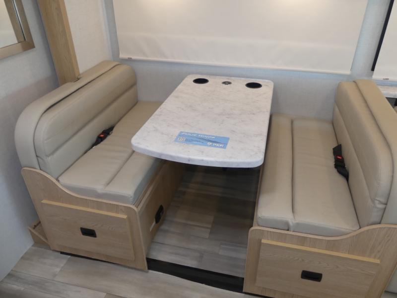 You and your spouse can go on your best adventures in this motorhome! You will have great views out of the many windows when you are indoors, and the power awning offers an outdoor living area protected by the elements when you want some fresh air. The cook will love the large single bowl stainless steel sink with a single handle faucet with a pull-down sprayer when cleaning fruits and veggies, the gas cooktop and microwave when making meals, as well as the 12V refrigerator to hold all the cold items. The slide out creates even more floor space, the 71" Dream Dinette and sofa offers a place to dine and visit as well as sleep, and the rear private bedroom with a full bathroom just steps away will complete the deal!